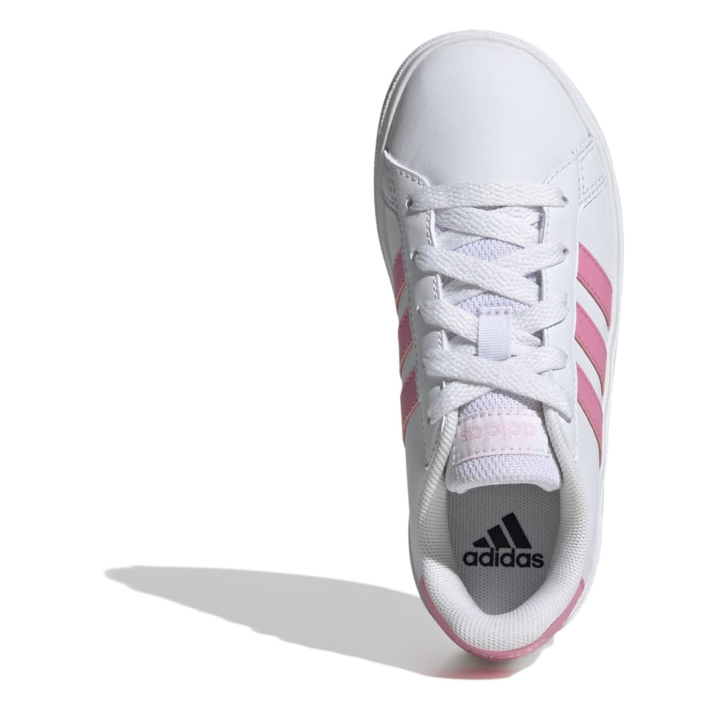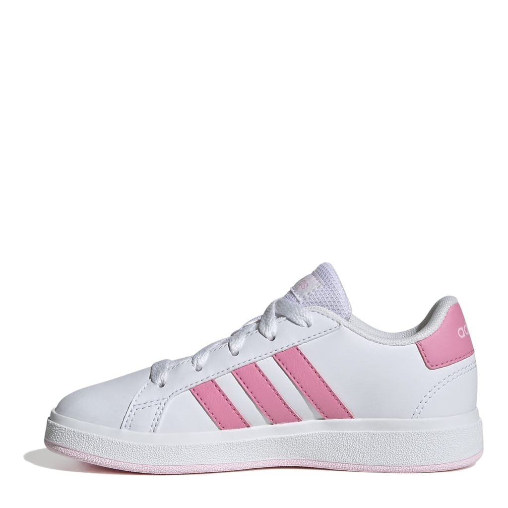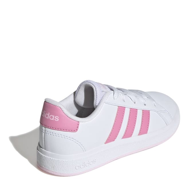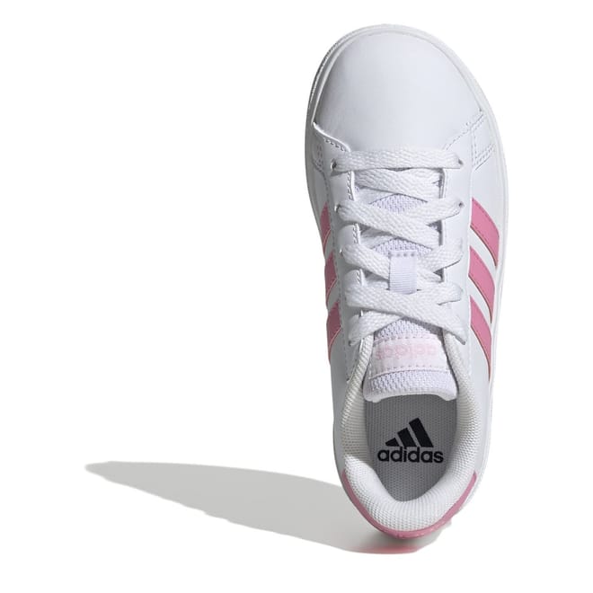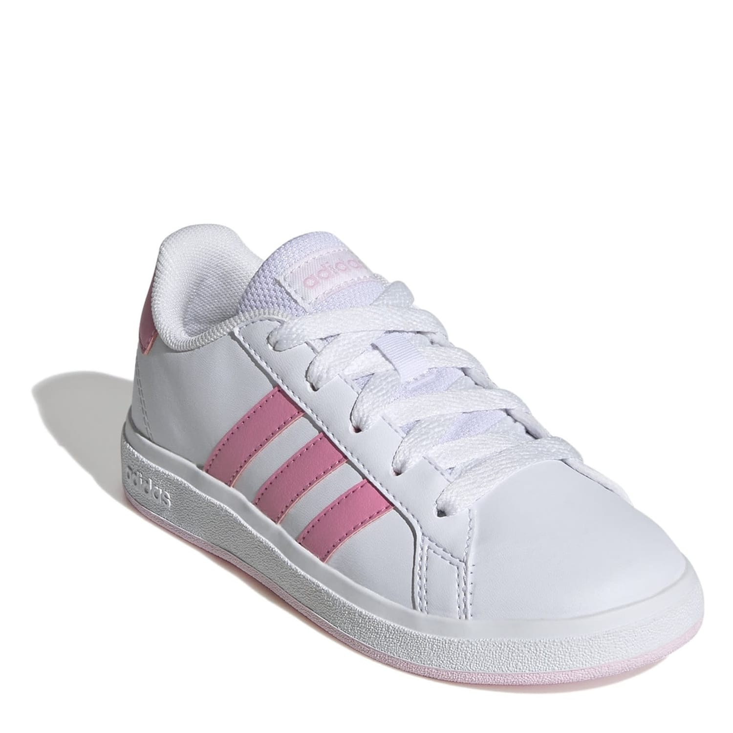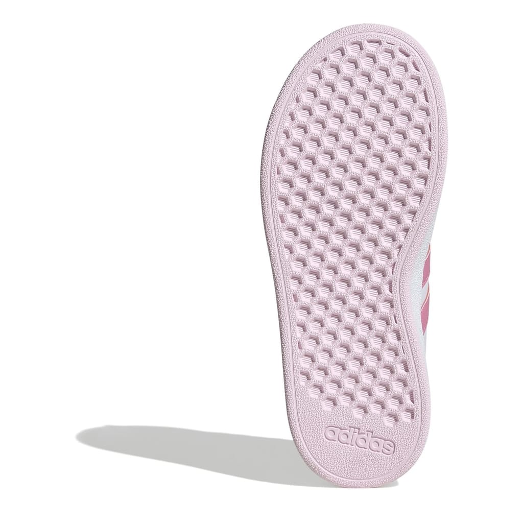 Add to your mini me's shoe-drobe with these trainers from Adidas. Designed with a faux leather upper, this pair boasts the iconic three stripes to the sides in a contrasting colour to add an update to the classic 70s style. Sat on a rubber sole with a lace up closure, this pair is finished with the Adidas logo at the tongue. -