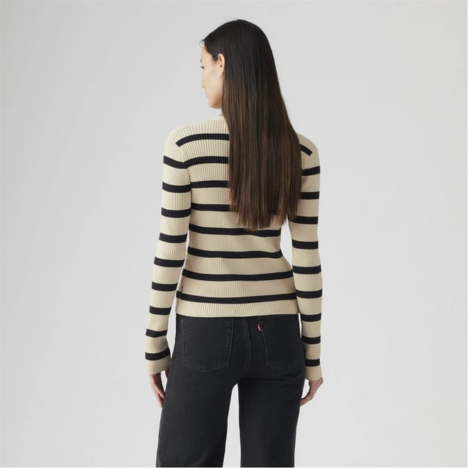 This Levis cardigan sweater in a stylish stripe pattern offers a timeless V-neck design with a button closure. Featuring long sleeves with ribbed cuffs, it ensures comfort with its regular fit. The classic caviar style adds an elegant touch to your wardrobe, making it a versatile top for various occasions. -