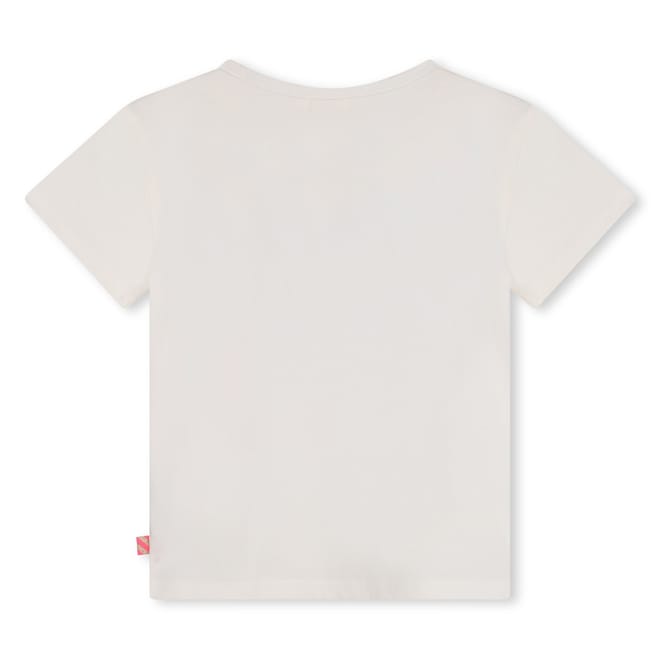 This Billieblush t-shirt is a charming addition to your wardrobe. Featuring a heart graphic print, it offers a regular fit with short sleeves and a classic crew neck. The embellishments add a playful touch to this top, making it a versatile piece for casual outings. -