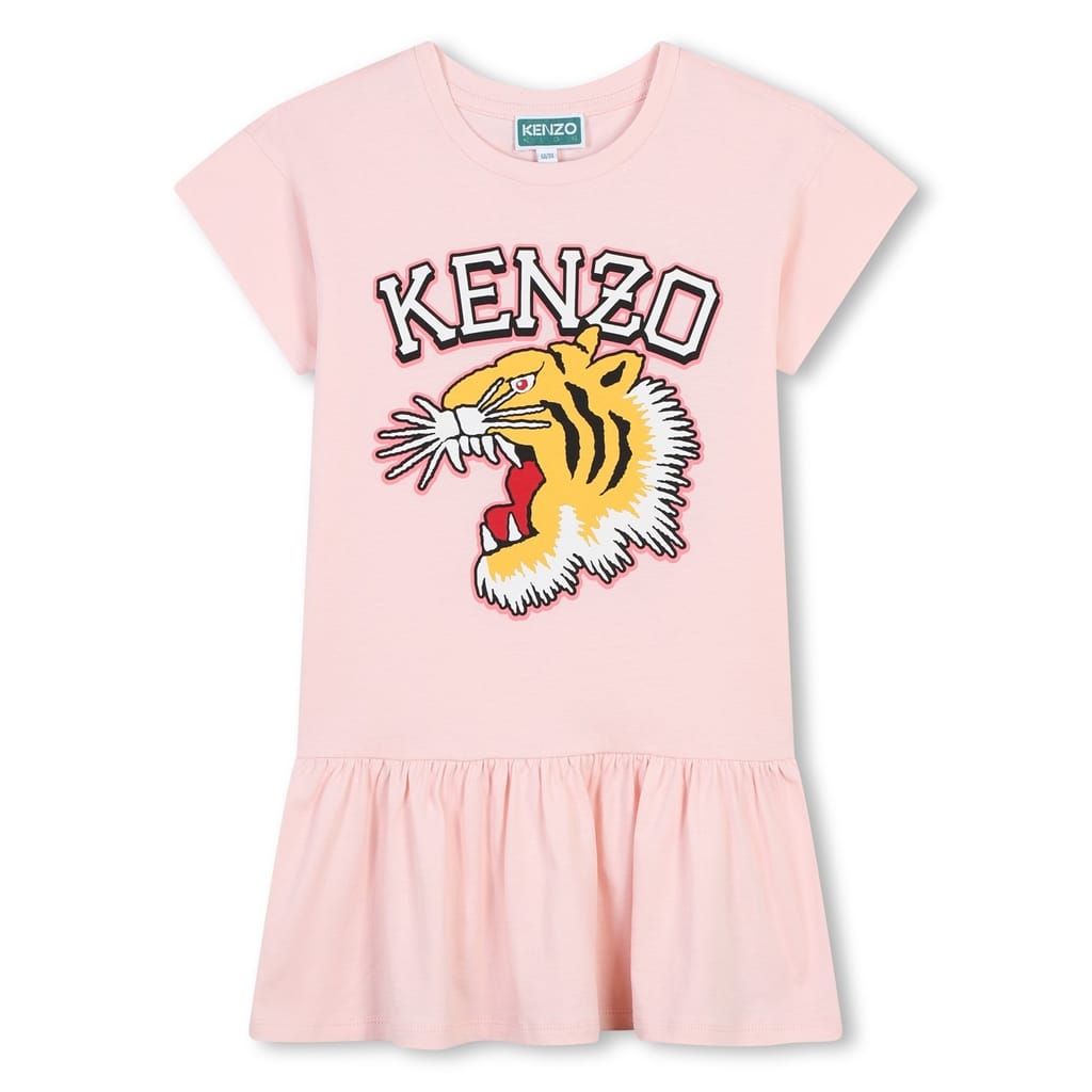 Kenzo unveils the Printed Logo Dress Juniors, a fusion of youthful charm and refined elegance. Crafted from a soft cotton blend, this dress exudes luxury and comfort. Its regular fit with a dropped waist and ribbed crew neck with short sleeves embodies sophistication and timeless beauty. The gathered mini skirt adds a graceful movement, while the iconic Tiger print effortlessly commands attention, a proud symbol of the brand's spirit and style.