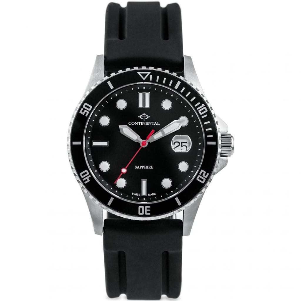 Continental Sports 20504-GD154430 is a functional and attractive Gents watch from Sports collection. Case material is Stainless Steel and the Black dial gives the watch that unique look. In regards to the water resistance, the watch has got a resistancy up to 50 metres. It means it can be submerged in water for periods, so can be used for swimming and fishing. It is not recommended for high impact water sports. We ship it with an original box and a guarantee from the manufacturer. -