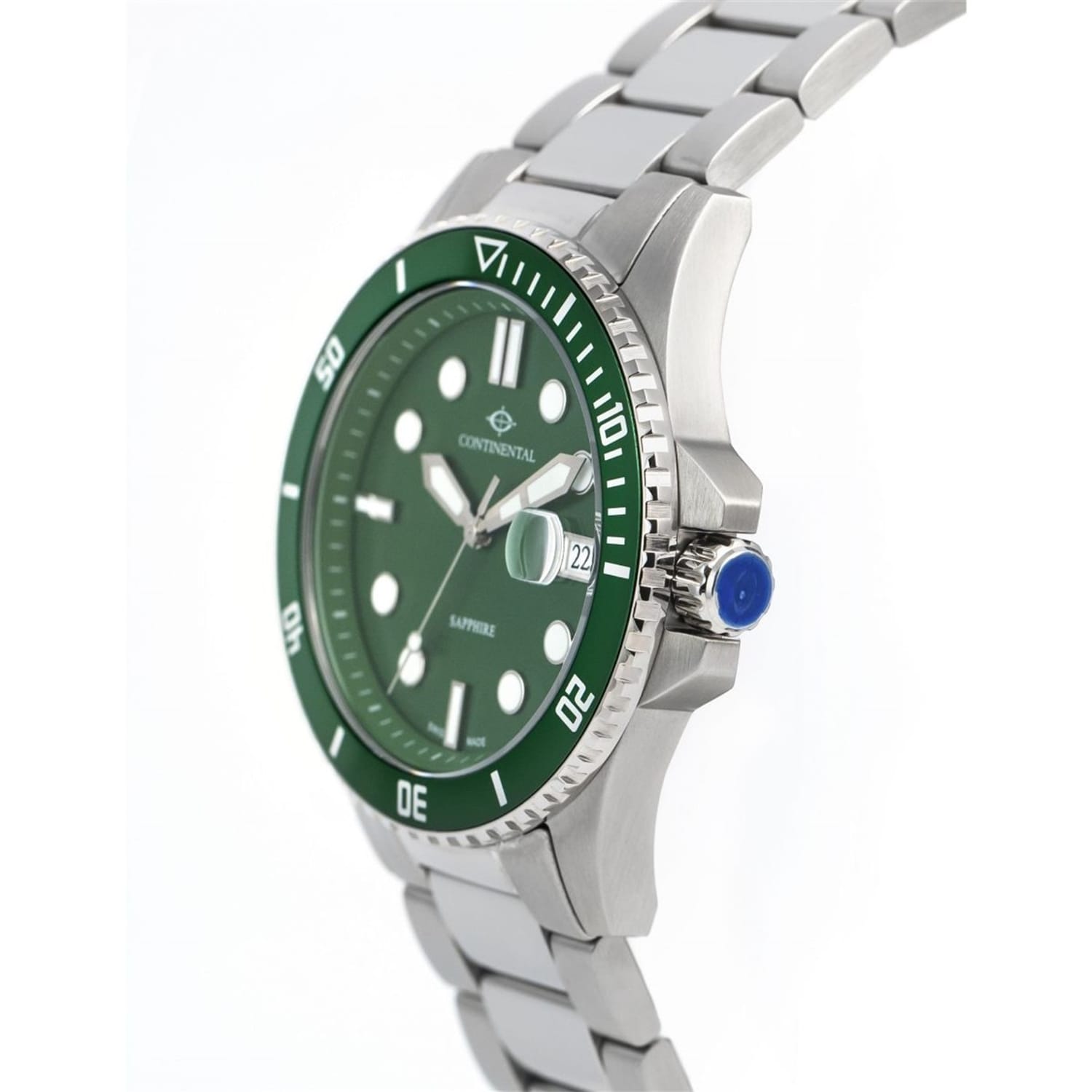 Continental Sports 20504-GD101950 is an amazing and handsome Gents watch from Sports collection. Case is made out of Stainless Steel and the Green dial gives the watch that unique look. In regards to the water resistance, the watch has got a resistancy up to 50 metres. It means it can be submerged in water for periods, so can be used for swimming and fishing. It is not recommended for high impact water sports. We ship it with an original box and a guarantee from the manufacturer. -