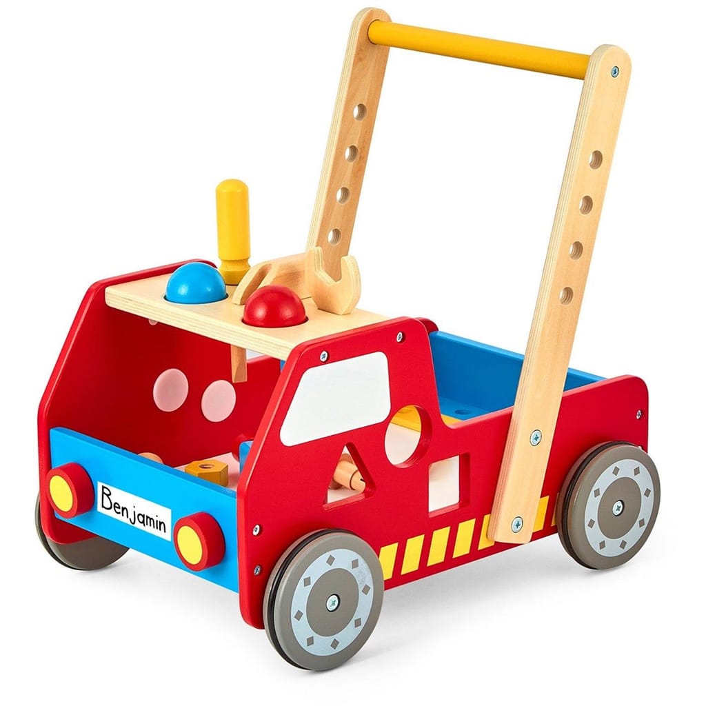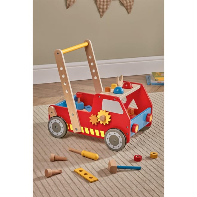 - Includes a variety of colorful wooden tools and accessories such as bolts, screws, and a wrench, encouraging hands-on exploration and pretend fixing. - Supports Early Walking Skills