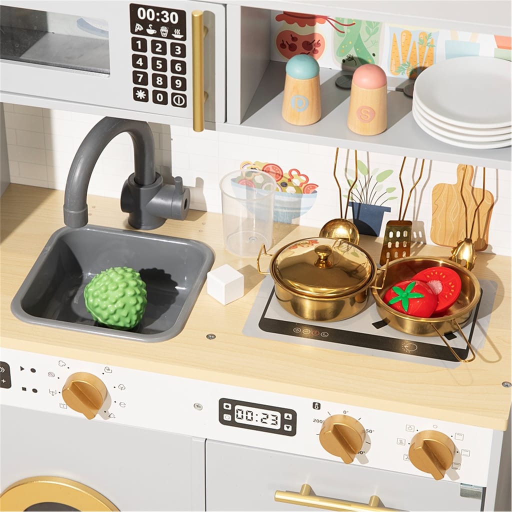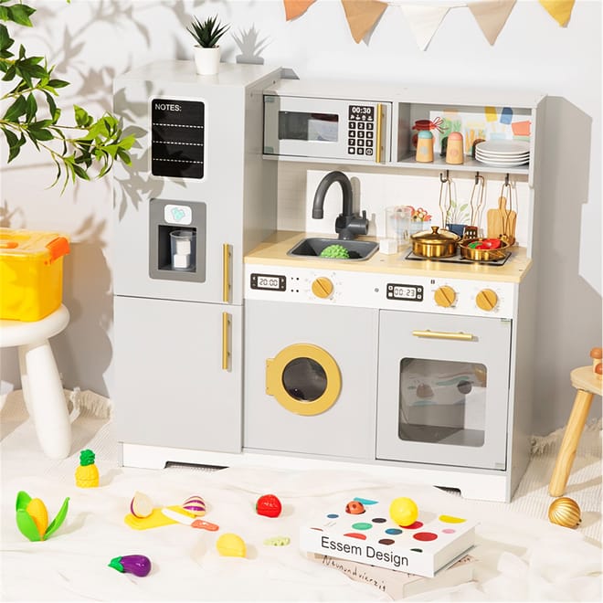 Ideal for imaginary meals and dinners with friends, we've made sure there's enough realism here to inspire future chefs and bakers alike. Realistic features such as water dispenser, sink taps, oven and washing machine, finished in a super modern look and feel.
