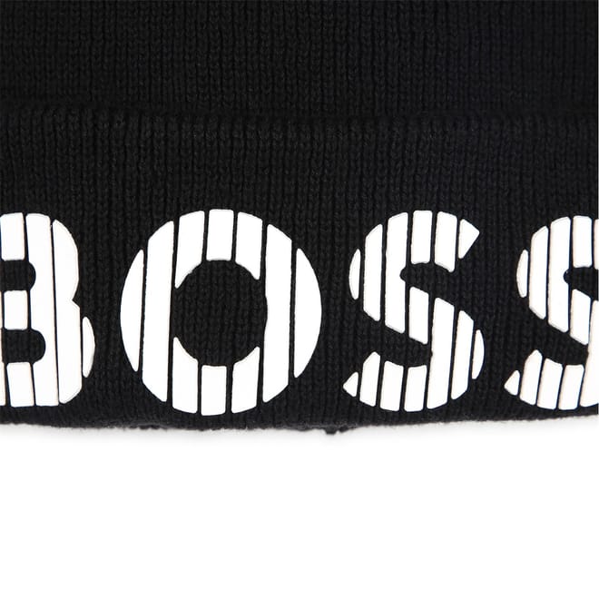 Elevate your casual wardrobe with the Boss beanie. Crafted with a knit design, this hat offers both style and comfort. The standout feature is the logo embellishment, complemented by subtle lettering, making it a versatile addition to any outfit. Perfect for those seeking a blend of fashion and functionality. -