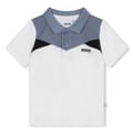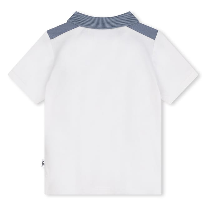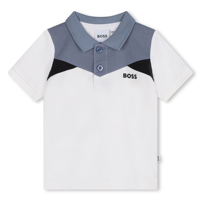 The Boss polo shirt is a standout piece in the semi-formal collection. This shirt features a color block pattern and a polo collar, coupled with short sleeves for a classic and timeless look. It has a button closure and a regular fit, ensuring comfort and style. The shirt is embellished with the iconic logo, adding a distinctive touch to its design. -