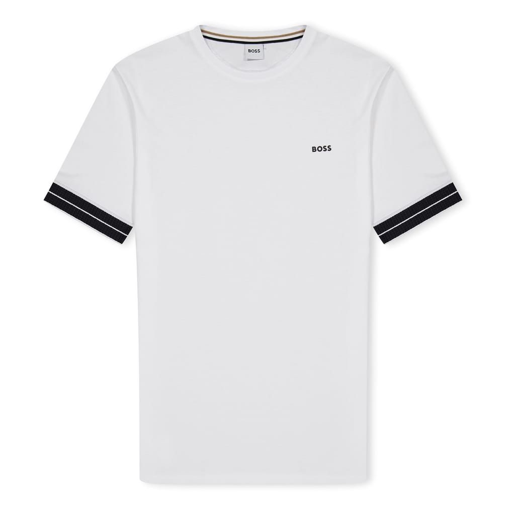 Elevate your casual wardrobe with this BOSS t-shirt. Crafted for a regular fit, it features a classic crew neck and short sleeves, making it a versatile choice for everyday wear. The subtle logo adds a touch of sophistication, embodying the brand's signature style. Ideal for those seeking a balance of comfort and understated elegance in their tops. -