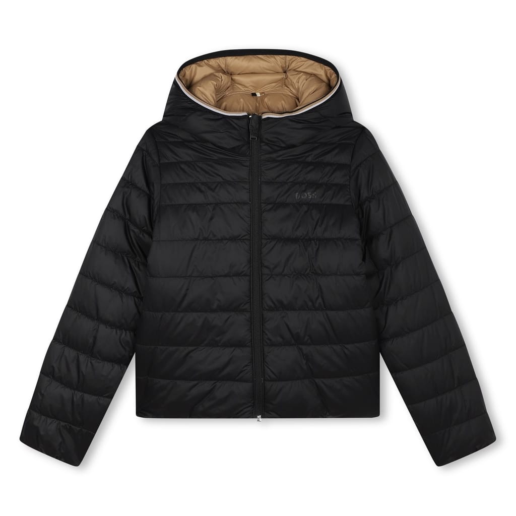 Discover the Boss puffer jacket, expertly crafted for those seeking a heavyweight, solid design. Featuring a hooded neckline and regular fit, this jacket ensures warmth and style. The zipper closure adds practicality, while the iconic logo embellishment elevates its classic appeal. Ideal for both casual and smart-casual occasions, this puffer jacket is a versatile wardrobe staple. -