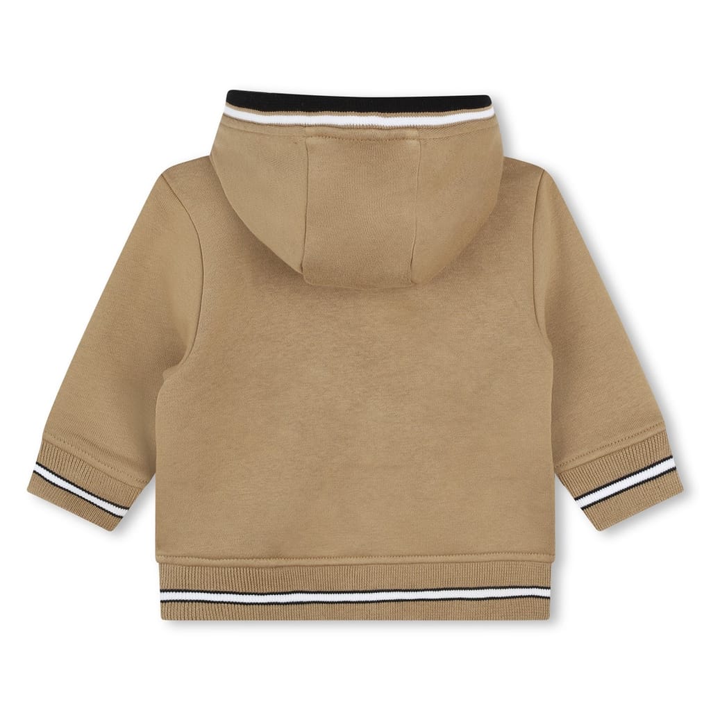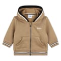 The Boss hooded jacket combines style and functionality with its solid pattern and sweatshirt design. Featuring a regular fit, it provides comfort and ease of movement. The jacket has a zipper closure and ribbed cuffs, while the short length adds a contemporary touch. An iconic logo embellishment subtly enhances the look, making it a versatile addition to your wardrobe. -