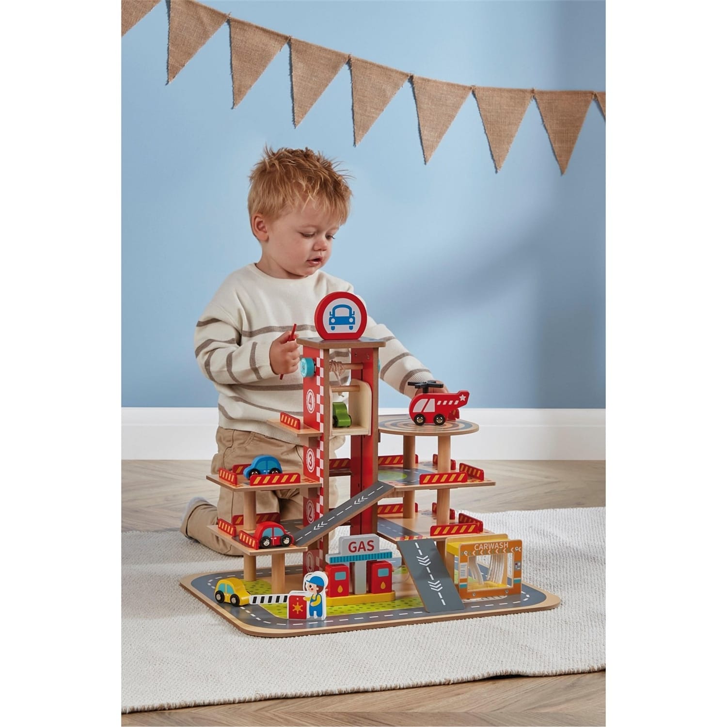 - The set comes with multiple wooden vehicles, including 4 cars, a helicopter, a car barrier, a gas station, a car wash, and even a staff figure, providing all the essentials for adventure-filled play. - Durable and Eco-Friendly Construction