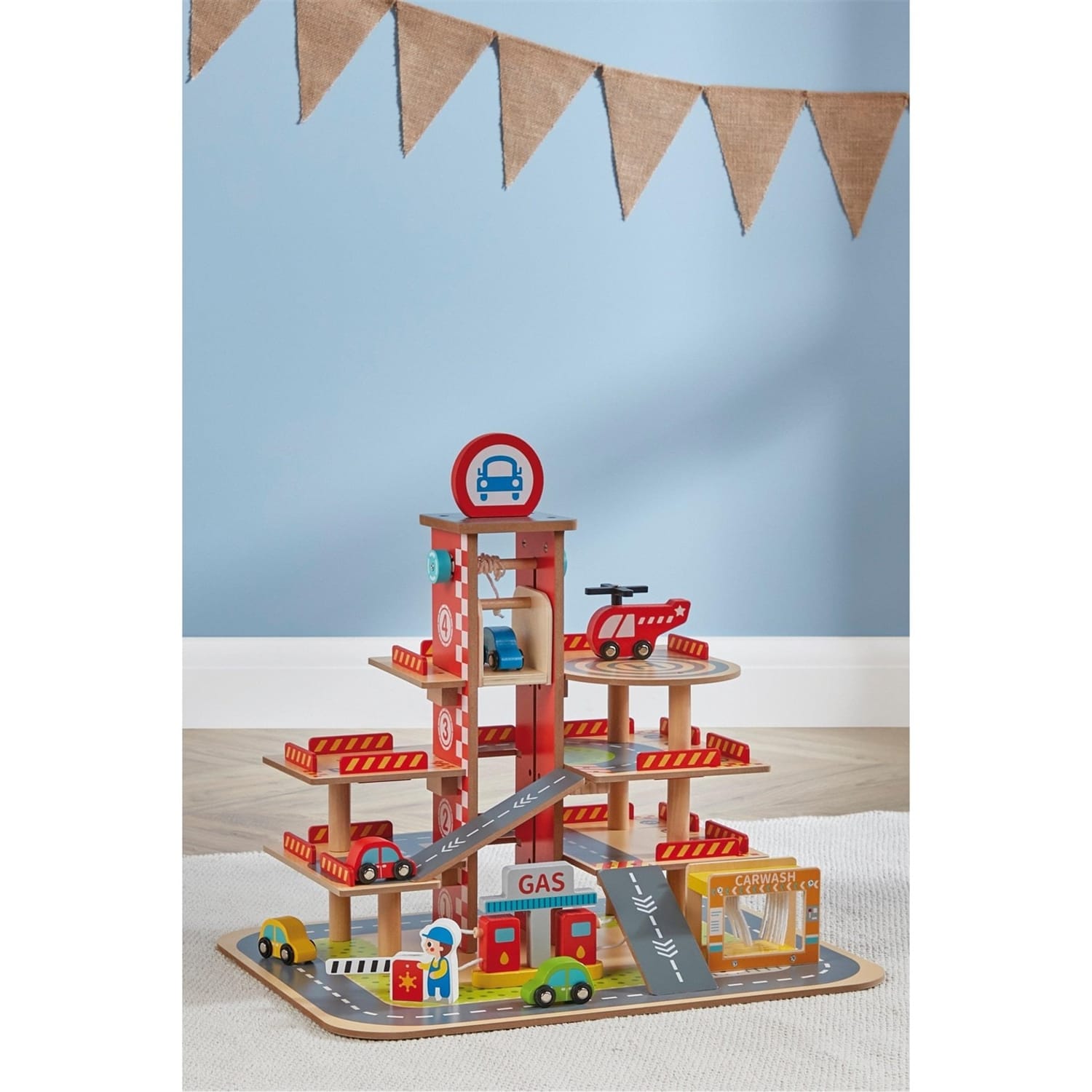4-Level Wooden Parking Garage Playset