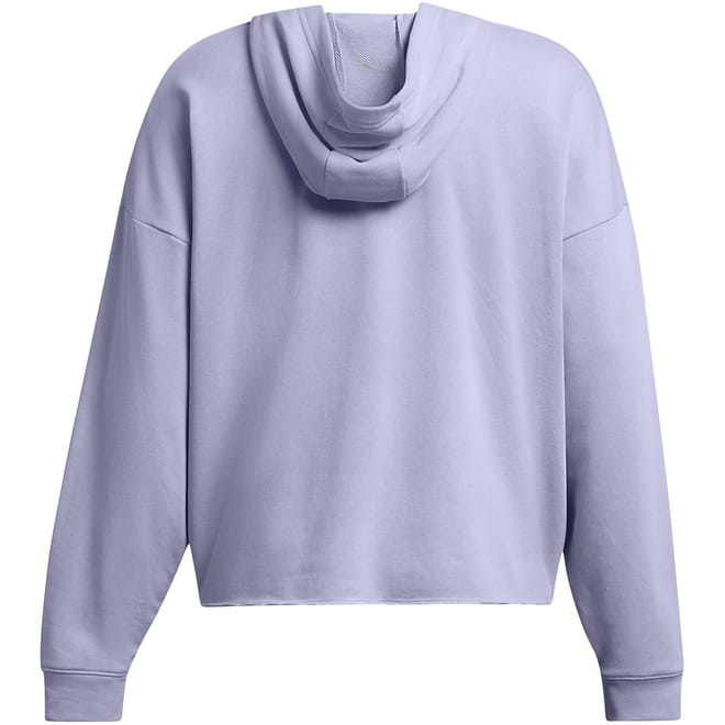 The Under Armour UA Rival Terry sweatshirt is the ideal choice for training enthusiasts. This cropped hoodie, featuring a relaxed fit, offers a comfortable performance with its long drop shoulder sleeves and ribbed cuffs. The design includes a hood and logo embellishment, adding a touch of style to your workout attire. -