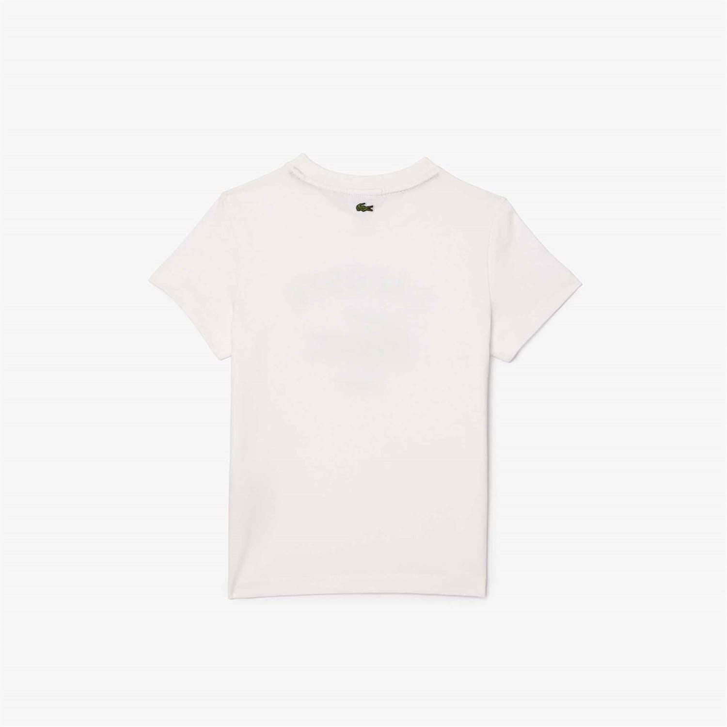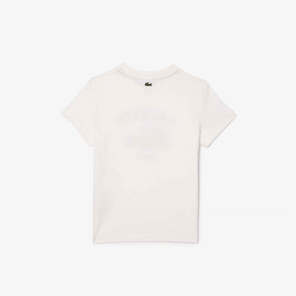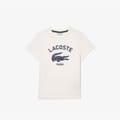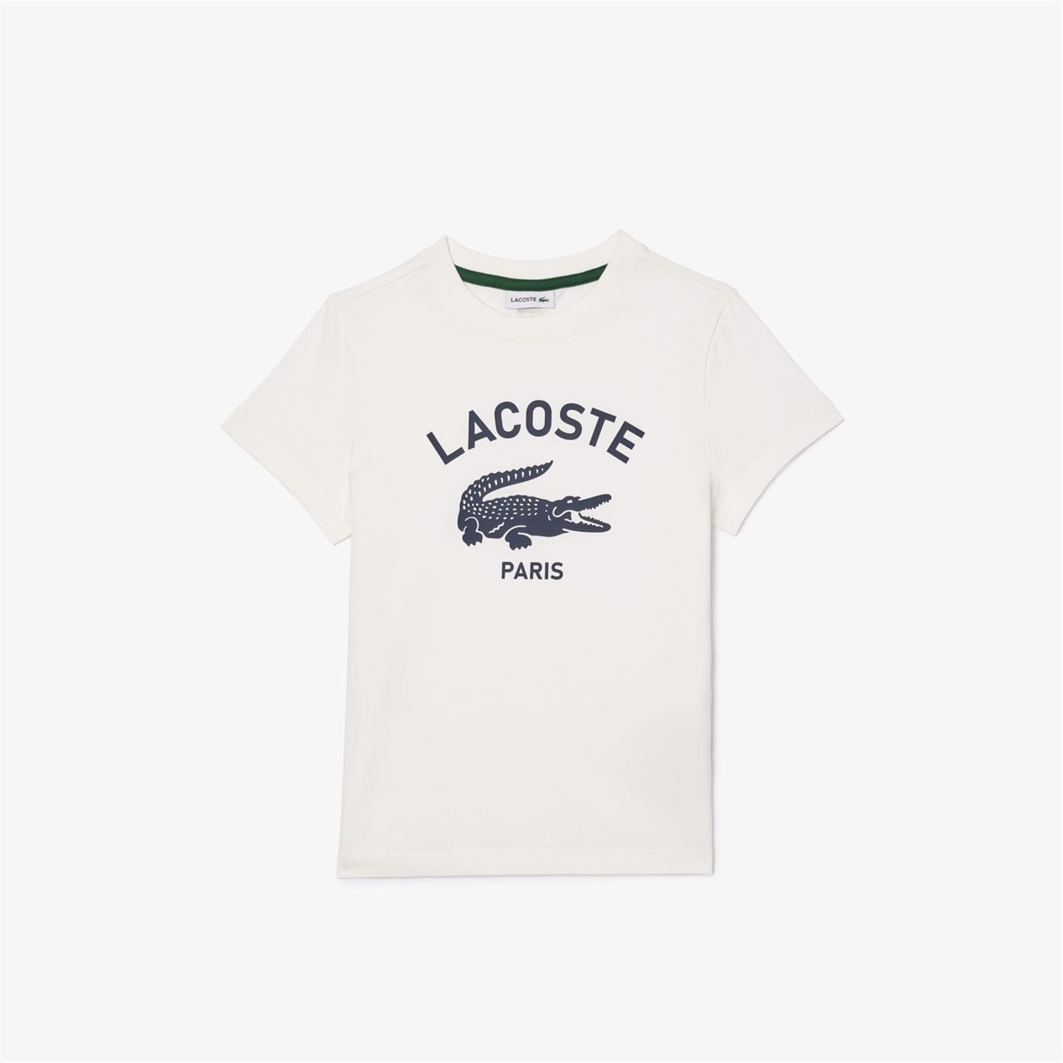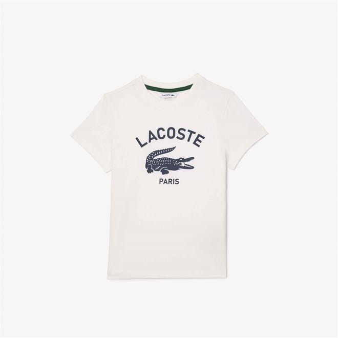 This Lacoste top for juniors features a regular fit and short sleeves, perfect for casual wear. The crew neck design is complemented by a distinctive graphic print, showcasing the iconic crocodile and Lacoste lettering. A subtle logo embellishment adds a touch of brand identity, making it a stylish choice for everyday comfort. -