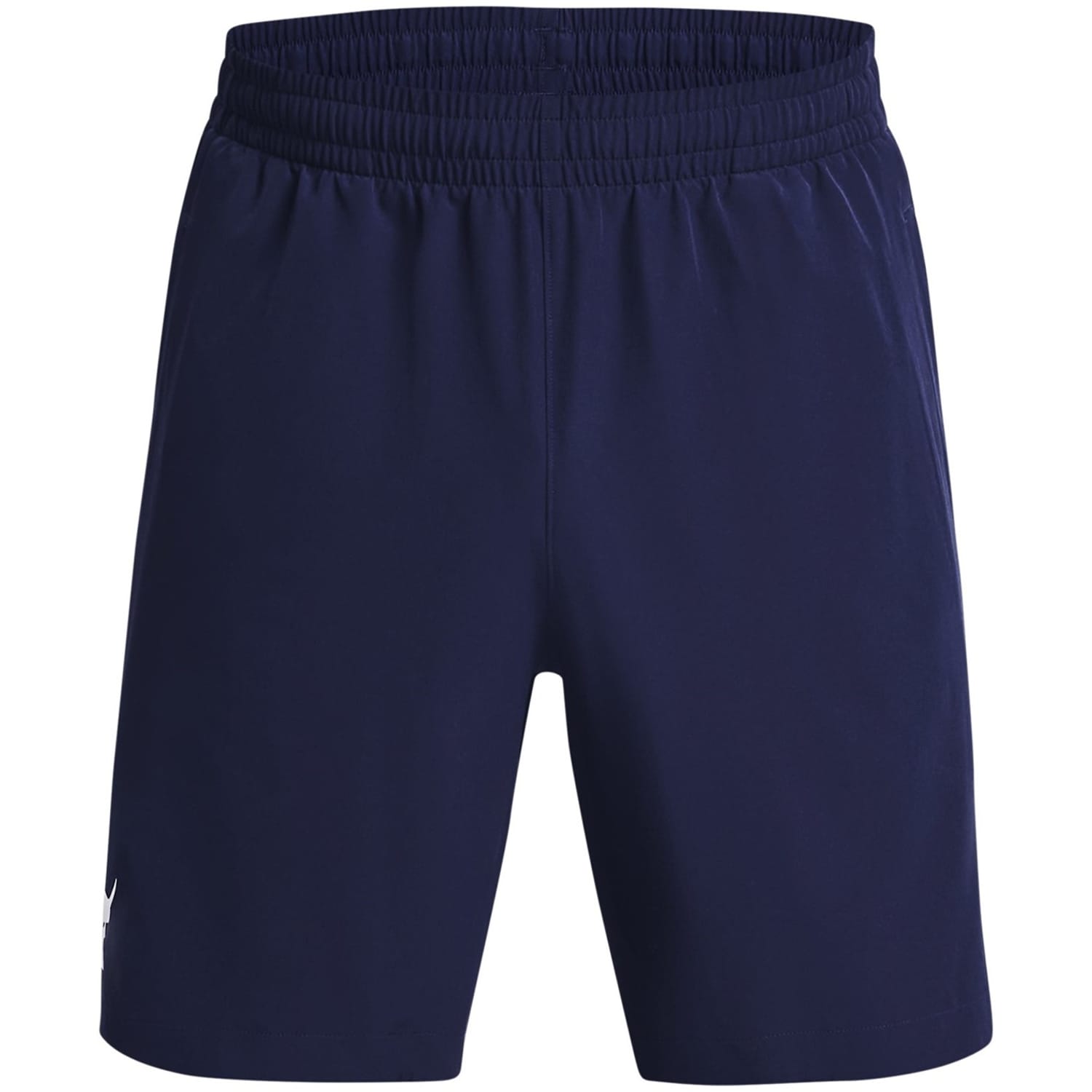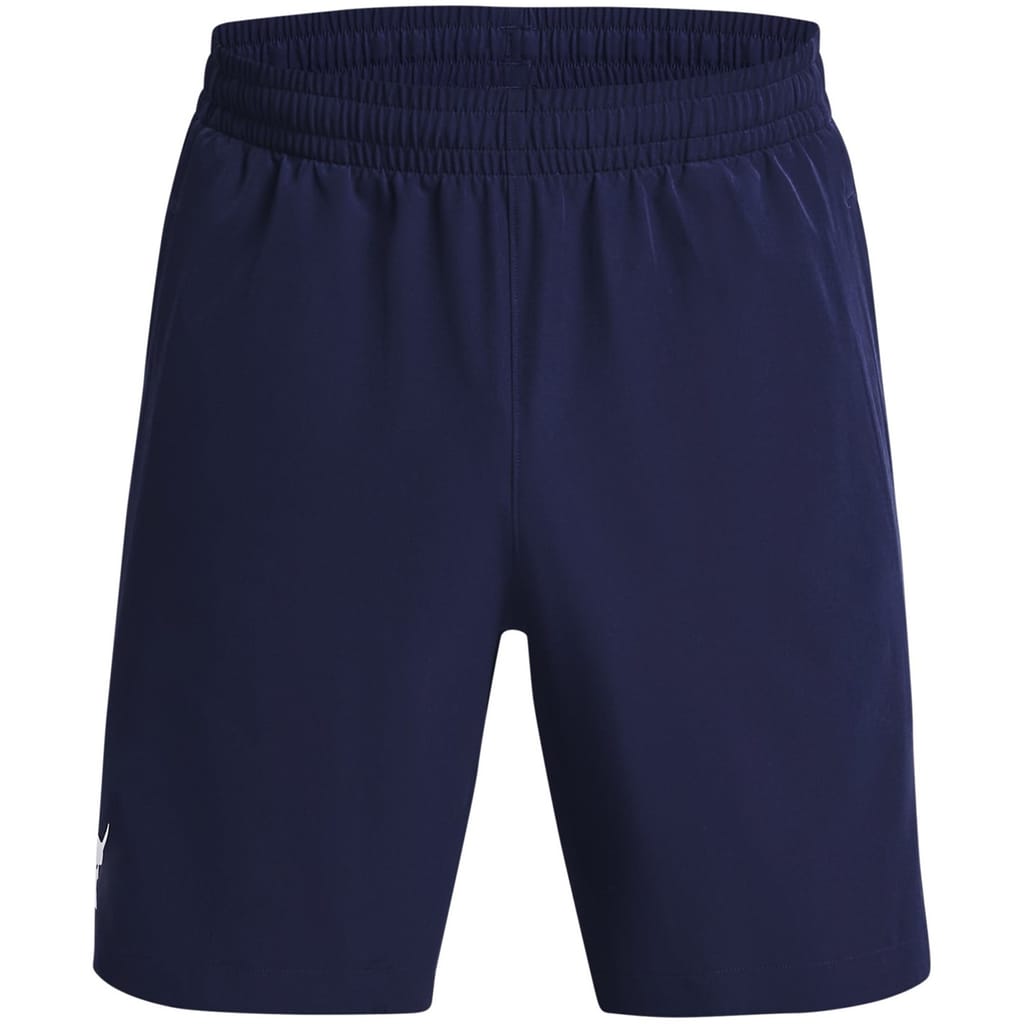 Elevate your workout wardrobe with Under Armour athletic shorts from the Activewear collection. Crafted from woven, performance fabric, these shorts ensure durability and comfort. Featuring a drawstring closure, solid pattern, and practical pockets, these shorts are perfect for active pursuits. The iconic logo adds a stylish touch to this essential piece. -