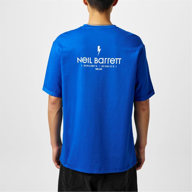 This Neil Barrett top from the casual collection features a regular fit and a solid pattern. It is designed with a crew neck and short sleeves, offering a comfortable and stylish look. The top is embellished with a logo, adding a touch of brand identity to the piece. -