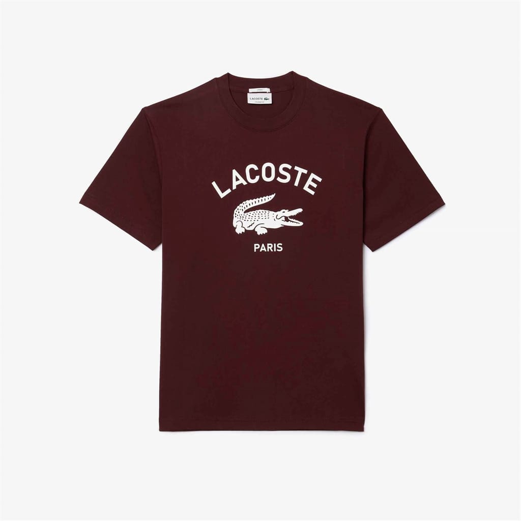 Elevate your casual wardrobe with this Lacoste Paris t-shirt. Featuring a graphic print, this regular fit top is crafted for comfortable wear. The classic crew neck and short sleeves make it a versatile choice. The signature crocodile logo embellishment adds a touch of brand recognition. -