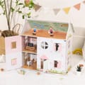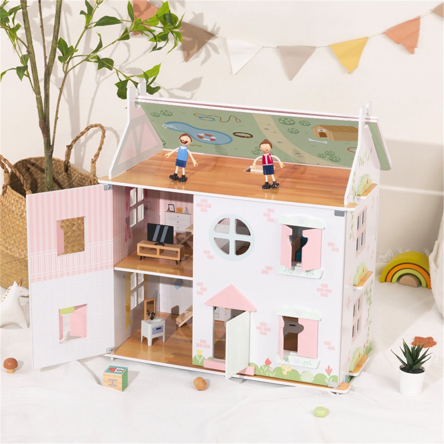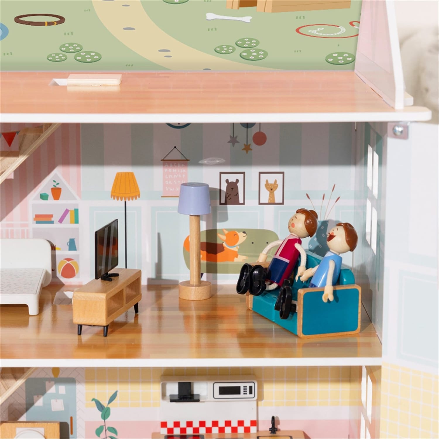 -- This beautifully detailed dollhouse features two fully furnished floors with rooms designed for imaginative storytelling and role-play.