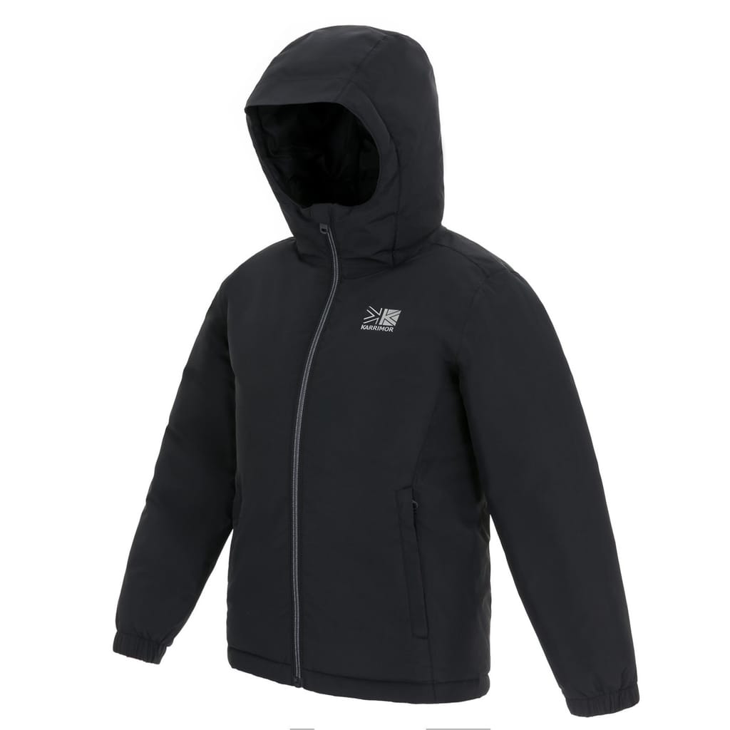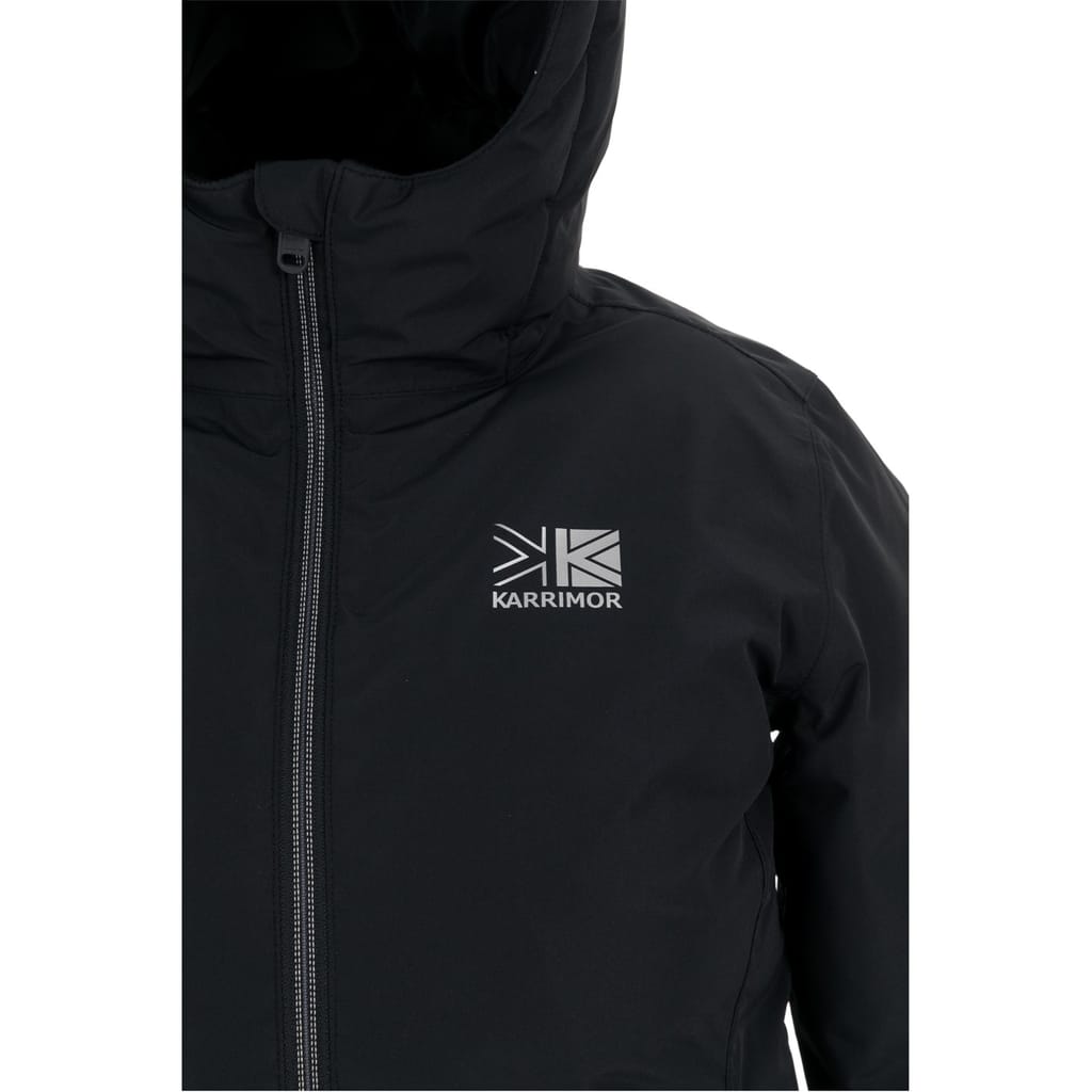 Discover the Karrimor puffer jacket, designed for optimal insulation and comfort. This solid jacket features a hooded neckline and a convenient zipper closure. Its regular fit and elasticated cuffs ensure a snug wear, while the logo adds a touch of brand identity. Perfect for those seeking a reliable and stylish outerwear option. -