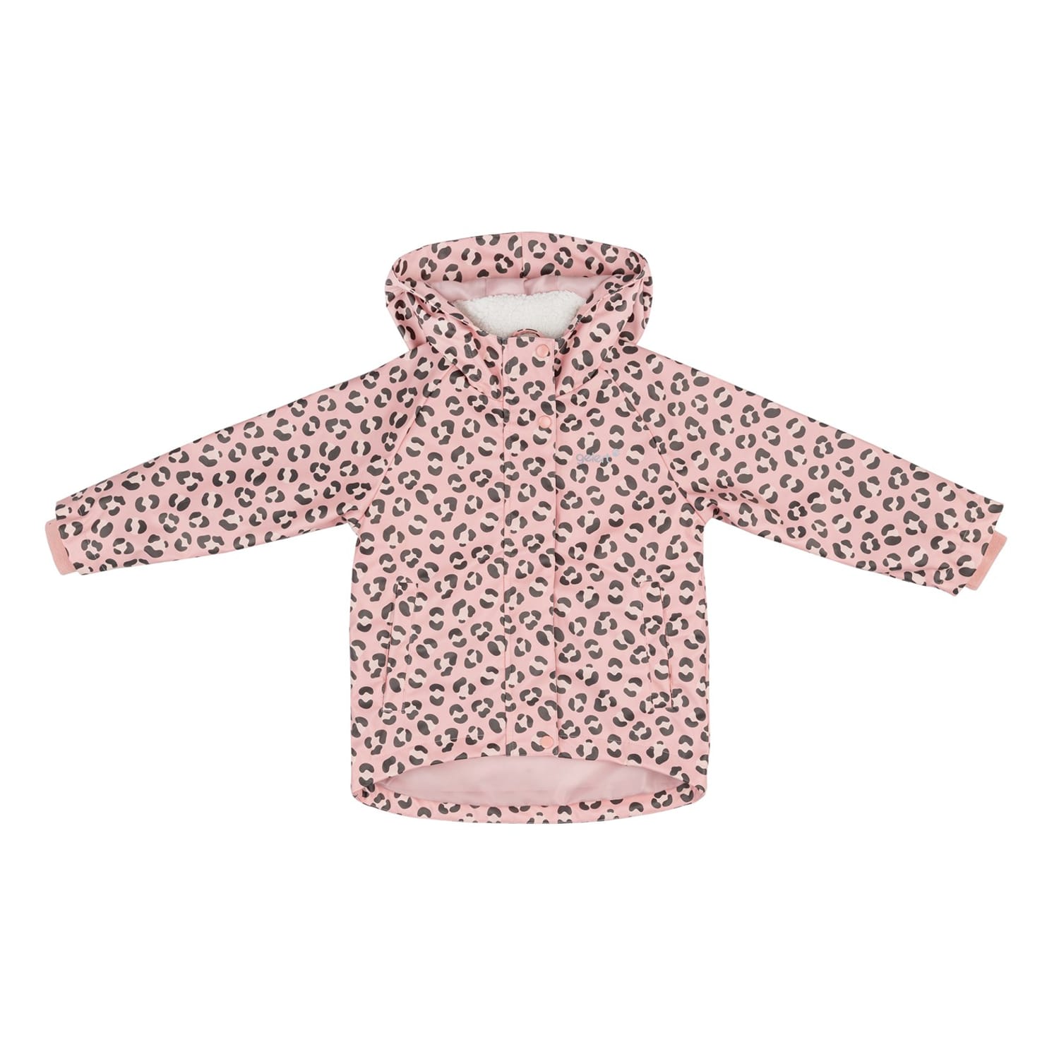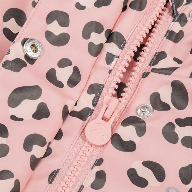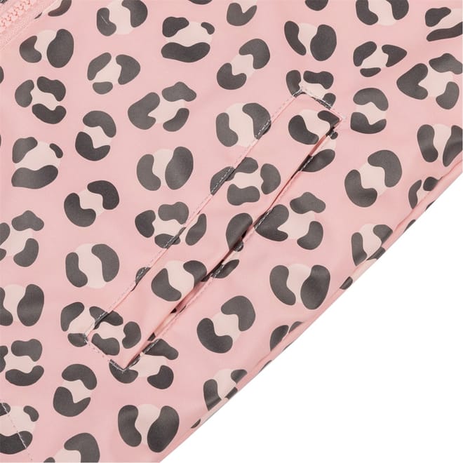 Introducing the Gelert infant rain jacket, designed for ultimate comfort and protection. This insulated jacket features a hooded neckline and a secure zipper closure. The ribbed cuffs and regular fit ensure a snug fit, while the leopard pattern adds a playful touch. Embellished with the Gelert logo, it's a stylish choice for little ones on rainy days. -