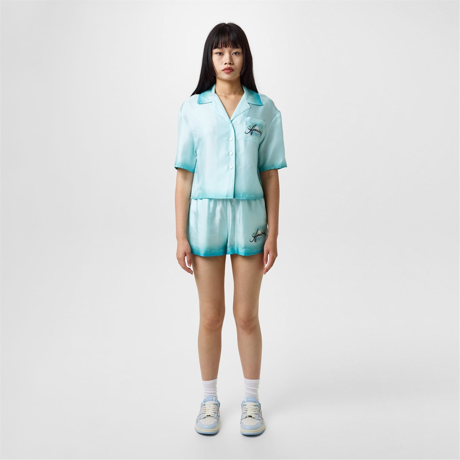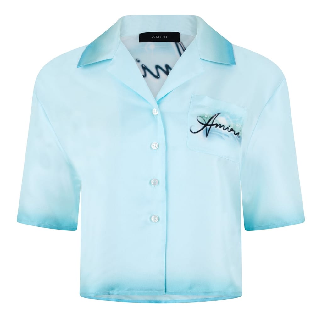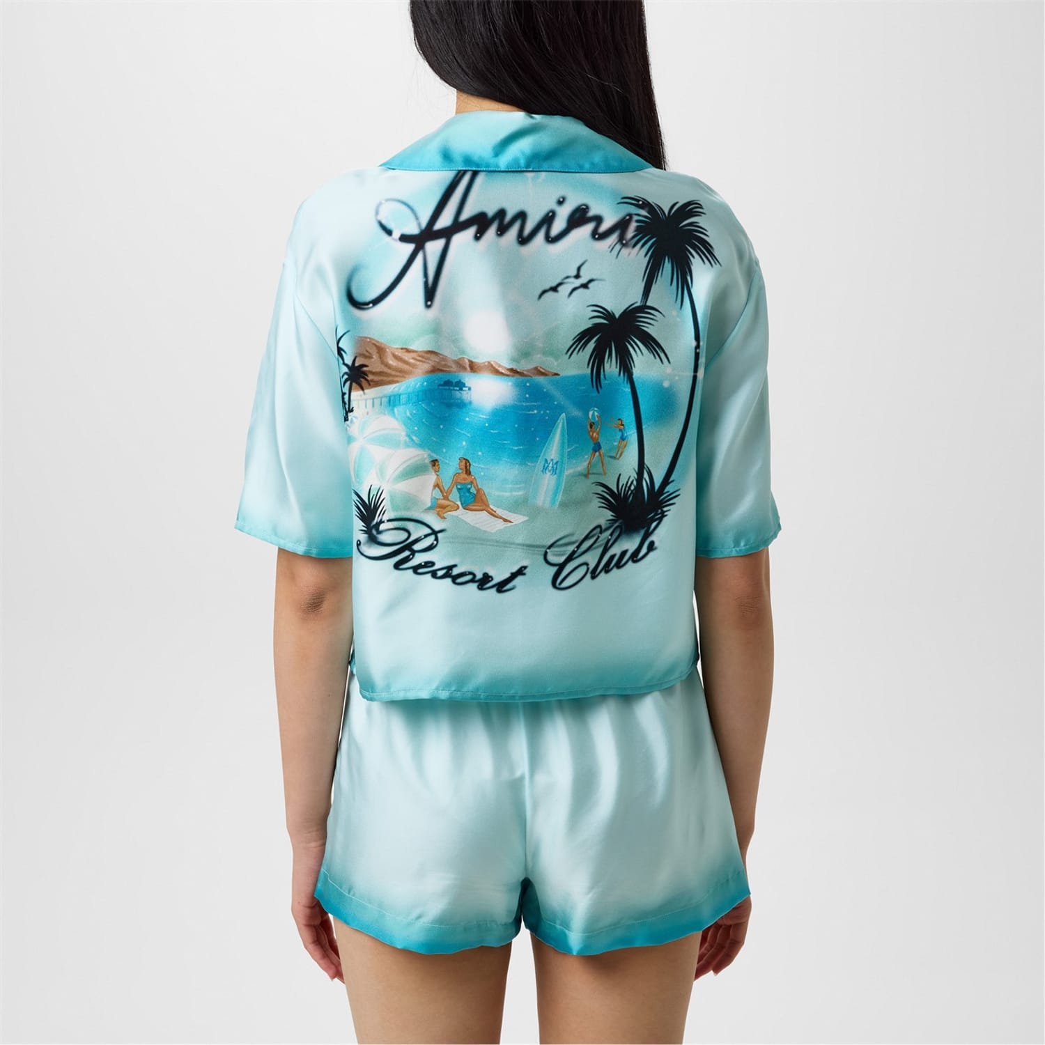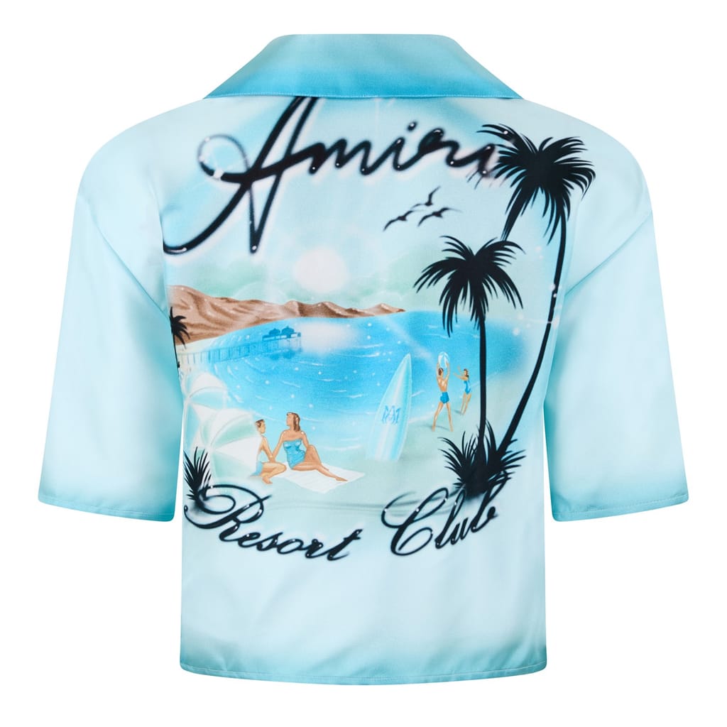 Step into the spotlight with Amiri's Resort Club Bowling Shirt – a bold statement piece that embodies California cool while elevating your summer style effortlessly. Whether strolling on the beach or enjoying a casual day out, this shirt with Amiri's fictional five-star resort club is depicted at the back in an airbrushed scene, infusing a touch of laid-back luxury into any look.