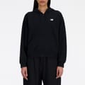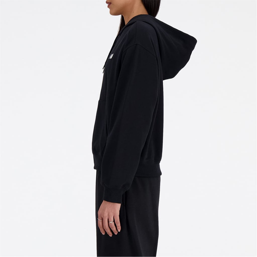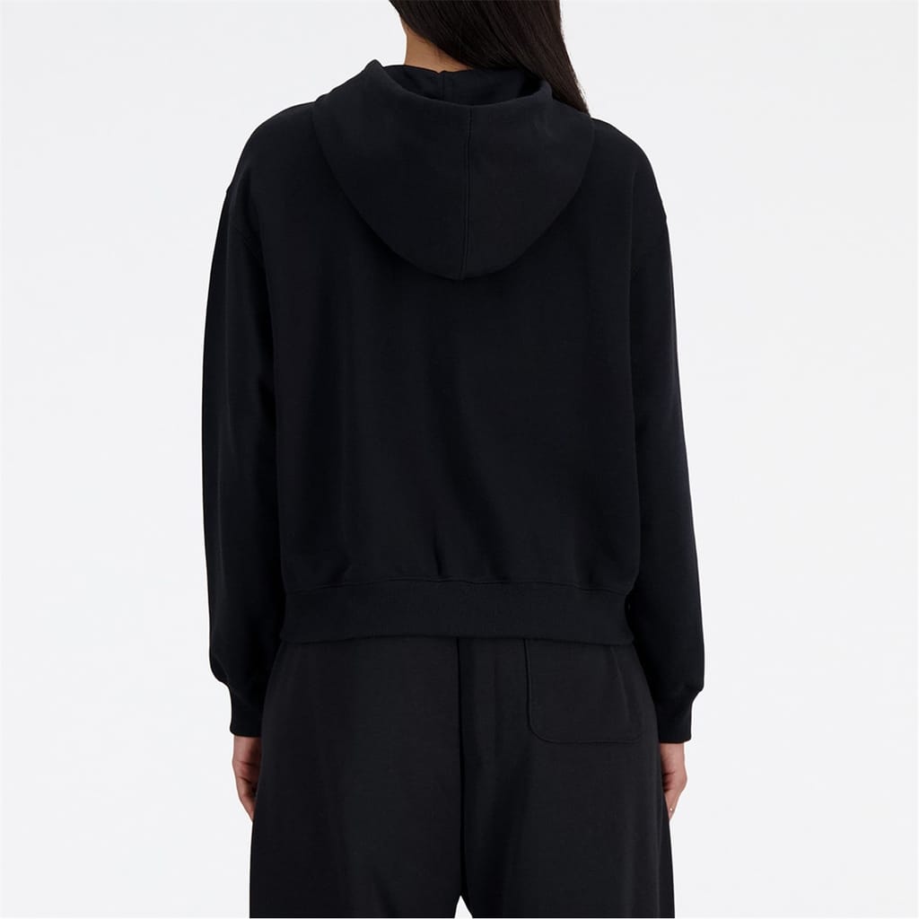 This New Balance top from the outerwear collection features a full zipper closure and a hooded neckline. Designed with long sleeves and a relaxed fit, it is perfect for all seasons. The solid pattern and logo embellishment add a touch of style to this versatile piece. -