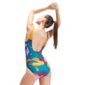Get ready to soak up the sun in style with Speedo's Printed U-Back Swimsuit, the ultimate summer essential for your warm-weather wardrobe. Inspired by Speedo's Aussie roots, this bold printed swimming costume is guaranteed to bring a touch of fun summer style to the pool or beach. Featuring a scoop neck, deep U-back, and medium-cut leg, this one-piece provides a comfortable and flattering fit that enhances your natural curves. Let the ECO EnduraBrite fabric take centre stage with its superb colour performance, ensuring that your swimming suit stays bright and vibrant, season after season. Plus, with chlorine-resistant CREORA® HighClo™, this women's one-piece will stay looking and fitting like new for longer.