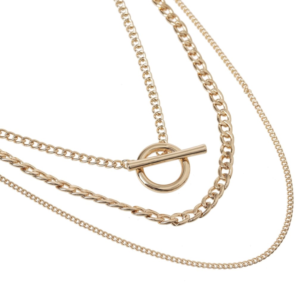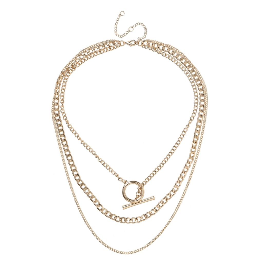 Layered Chain Necklace, 3 rows with lobster clasp fastening -