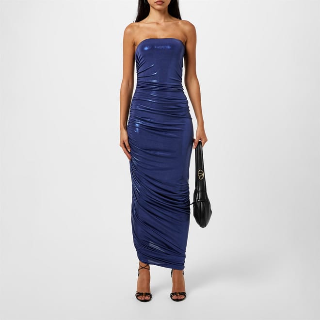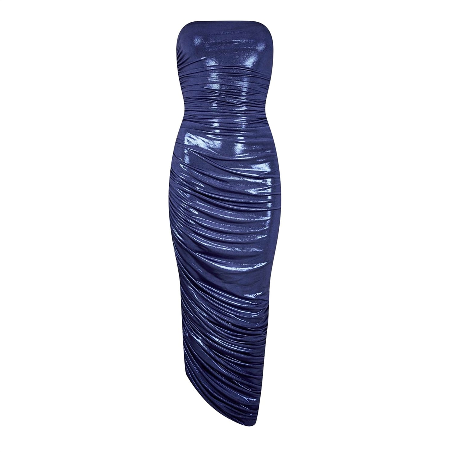 The Norma Kamali Diana dress is a stunning maxi bodycon piece, perfect for making a statement. Featuring a solid pattern, this slim fit dress is designed with an asymmetrical hem and ruched embellishments, adding a touch of elegance to its silhouette. Ideal for those seeking a sophisticated and stylish look. -