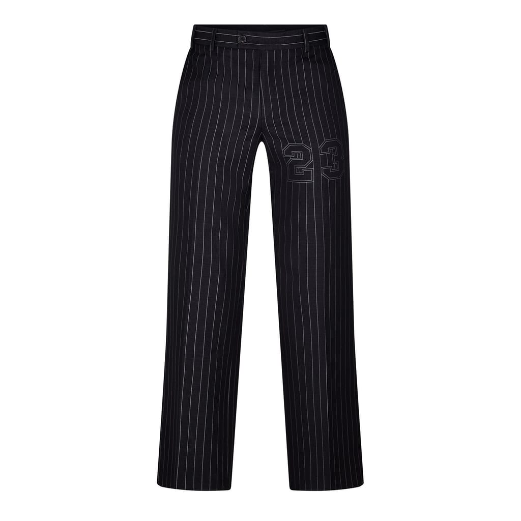 Discover Off-White's striped trousers, a stylish addition to your wardrobe. These pants feature a button closure and are adorned with practical pockets, offering both functionality and fashion. The slim fit design ensures a sleek silhouette, making them a versatile choice for various occasions. -