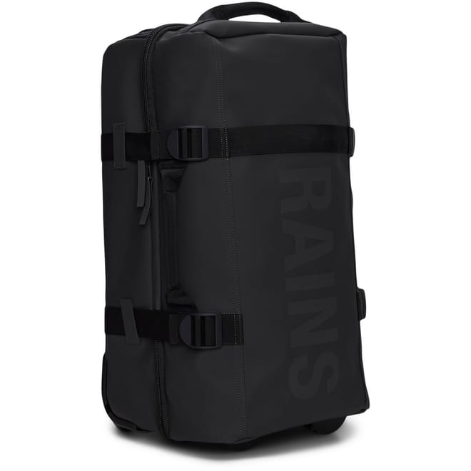 - This waterproof trolley combines Rains’ signature waterproof PU with a half-silhouette hard shell for upright stability and general durability.