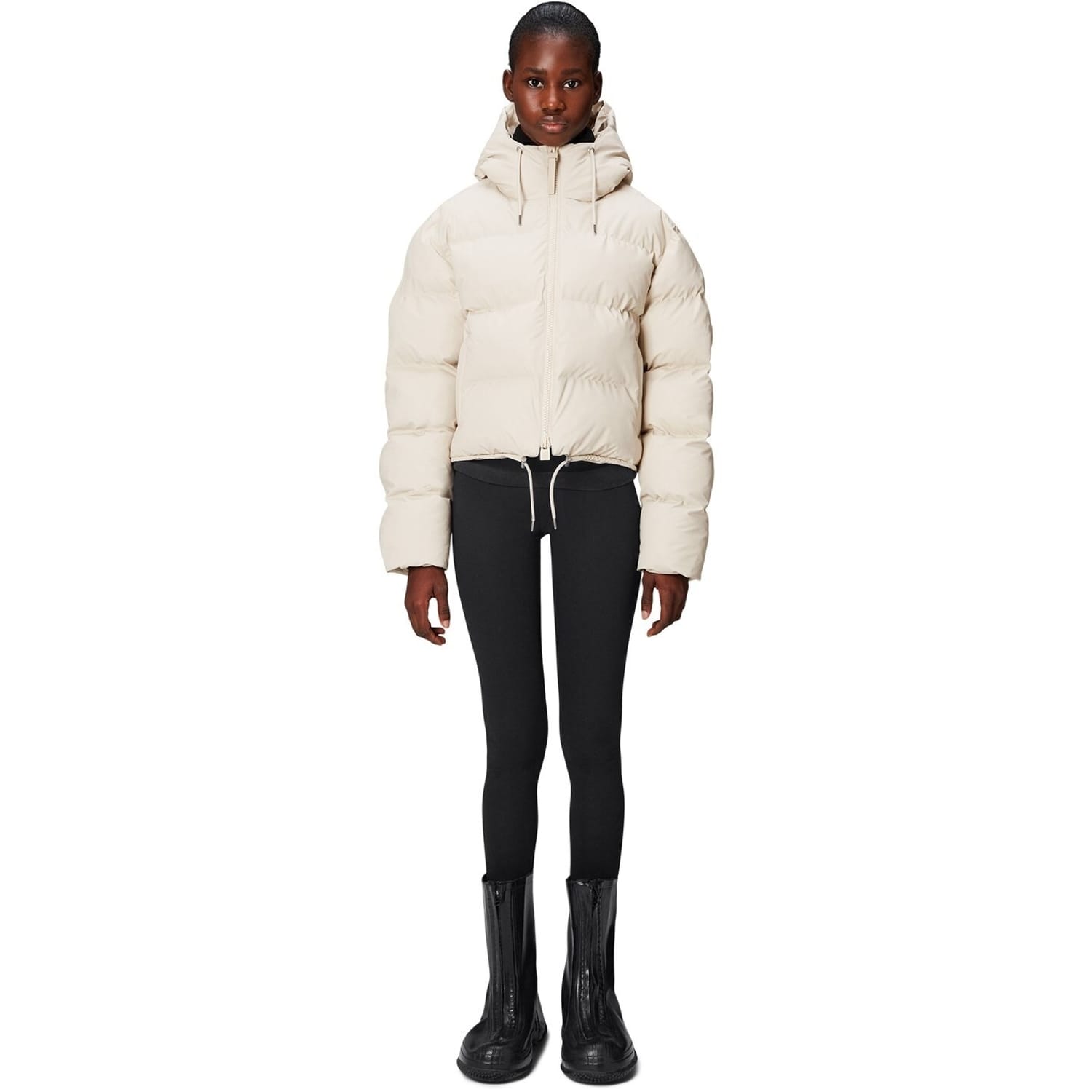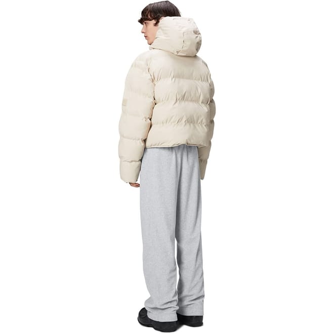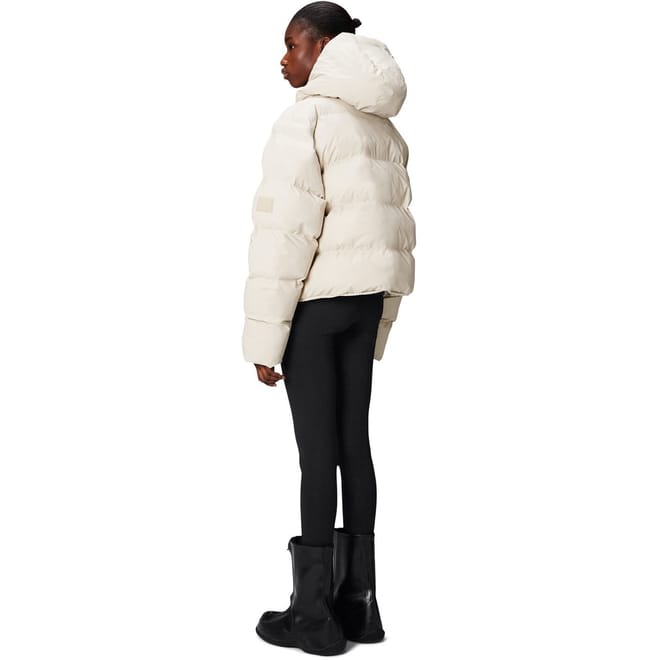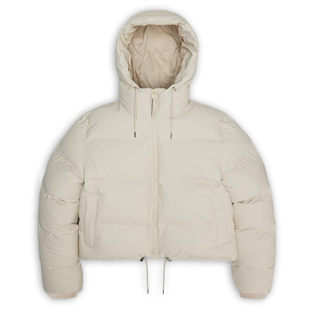 This Rains puffer jacket features a hooded design with a relaxed fit, offering both style and comfort. The solid pattern and short length make it a versatile addition to your wardrobe. It includes a zipper closure and practical pockets, while the puff sleeves add a unique touch. Perfect for those seeking a functional yet fashionable outerwear option. -