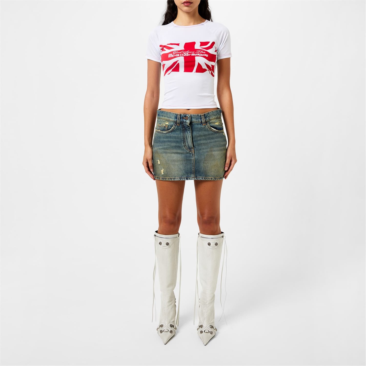 Make a statement in every setting with the Sinead Gorey Union Jack Screen Printed T-shirt, a vibrant homage to the rebellious attitudes of the punk movement. Designed with added stretch, this tee boasts a body-hugging yet comfortable fit, making it perfect for casual days in the city and styling evening events.