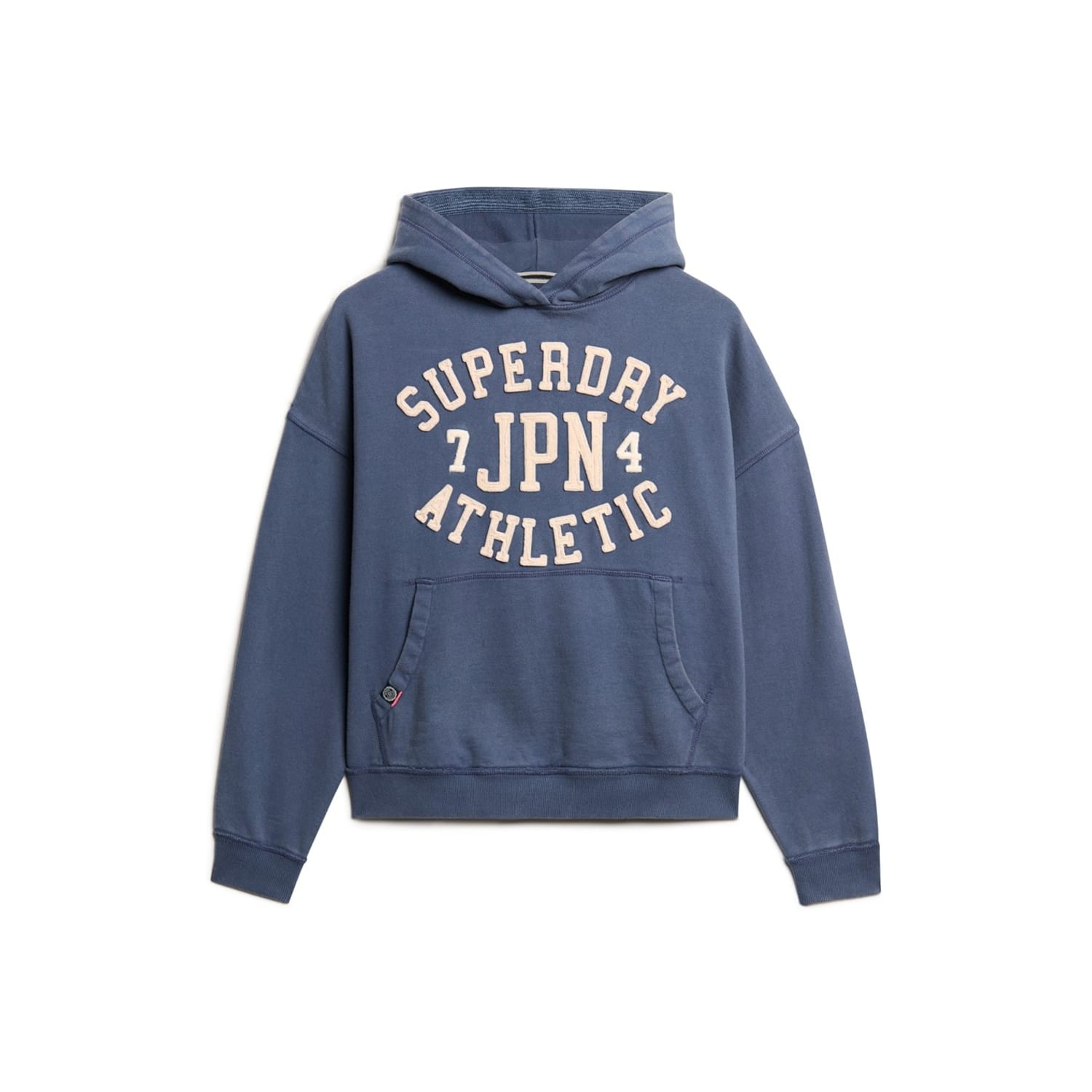 Discover the Superdry hoodie sweatshirt, a fusion of style and comfort. This top features a relaxed fit with a hood and drop shoulder long sleeves. The ribbed cuffs add a classic touch, while the embroidered front logo and graphic print enhance its unique appeal, making it a standout addition to any wardrobe. -