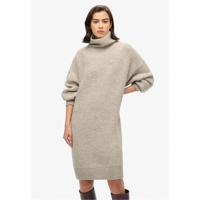 Discover the Superdry sweater dress, a perfect blend of style and comfort. This knee-length knit dress features a turtleneck and ribbed pattern, offering a sophisticated look. The long sleeves and ribbed hem add to its classic appeal, while the ribbed detail enhances its texture. Ideal for those seeking a versatile and stylish addition to their wardrobe. -