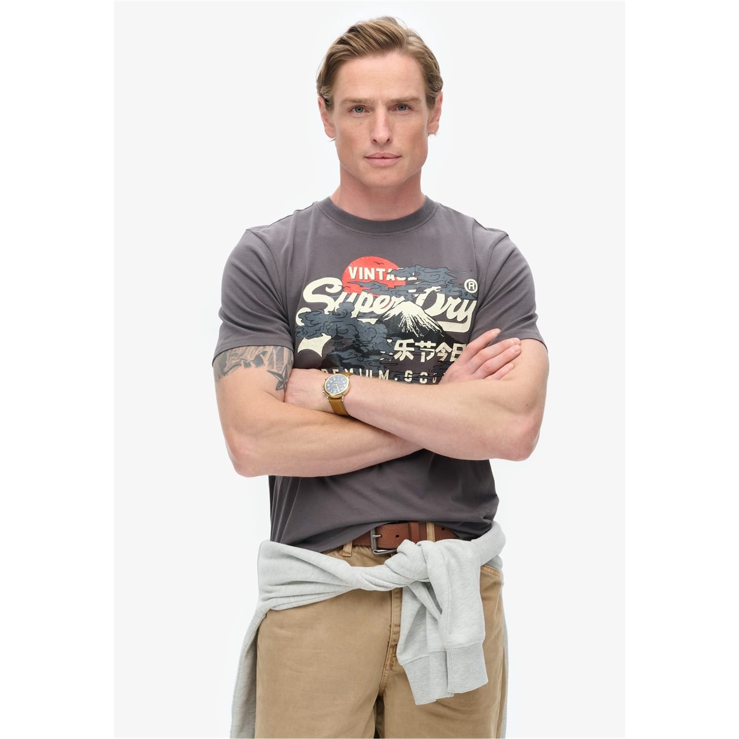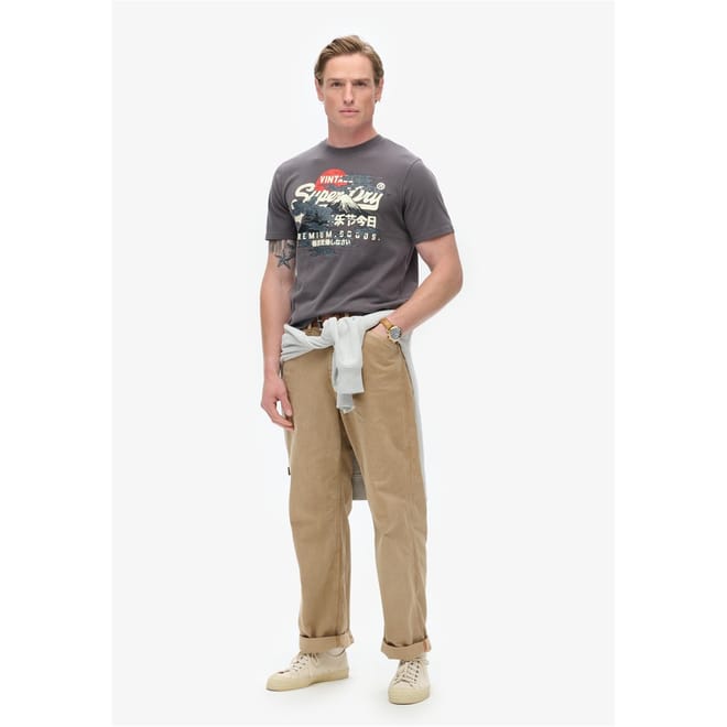 Elevate your casual wardrobe with this Superdry top, featuring a regular fit and a classic crew neck. The standout geographic print and logo embellishments add a distinctive touch, making it a perfect choice for those who appreciate graphic prints. Ideal for casual collections, this top combines style and comfort effortlessly. -