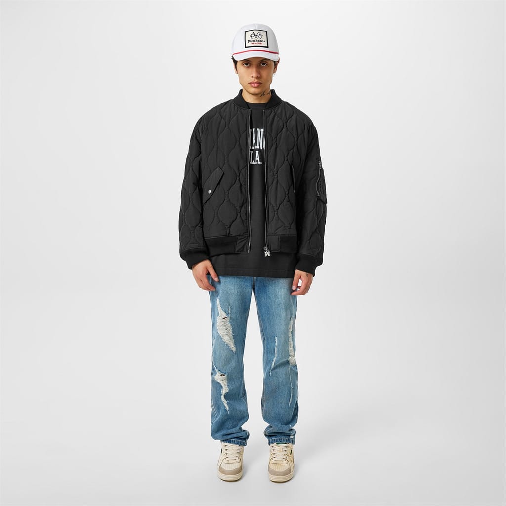 - Palm Angels LA lettering proudly printed across the chest in a classic varsity for instant brand recognition.