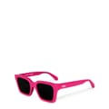 - Straight arms culminate in elegantly curved tips, ensuring a secure and comfortable fit, allowing these sunglasses to accompany you effortlessly throughout the day. Designed in a classic colourway these sunglasses boast a vibrant hue, the subtle logo print displayed proudly along the arm serves as a hallmark of quality and exclusivity, a subtle yet potent symbol of your affiliation with the avant-garde. -