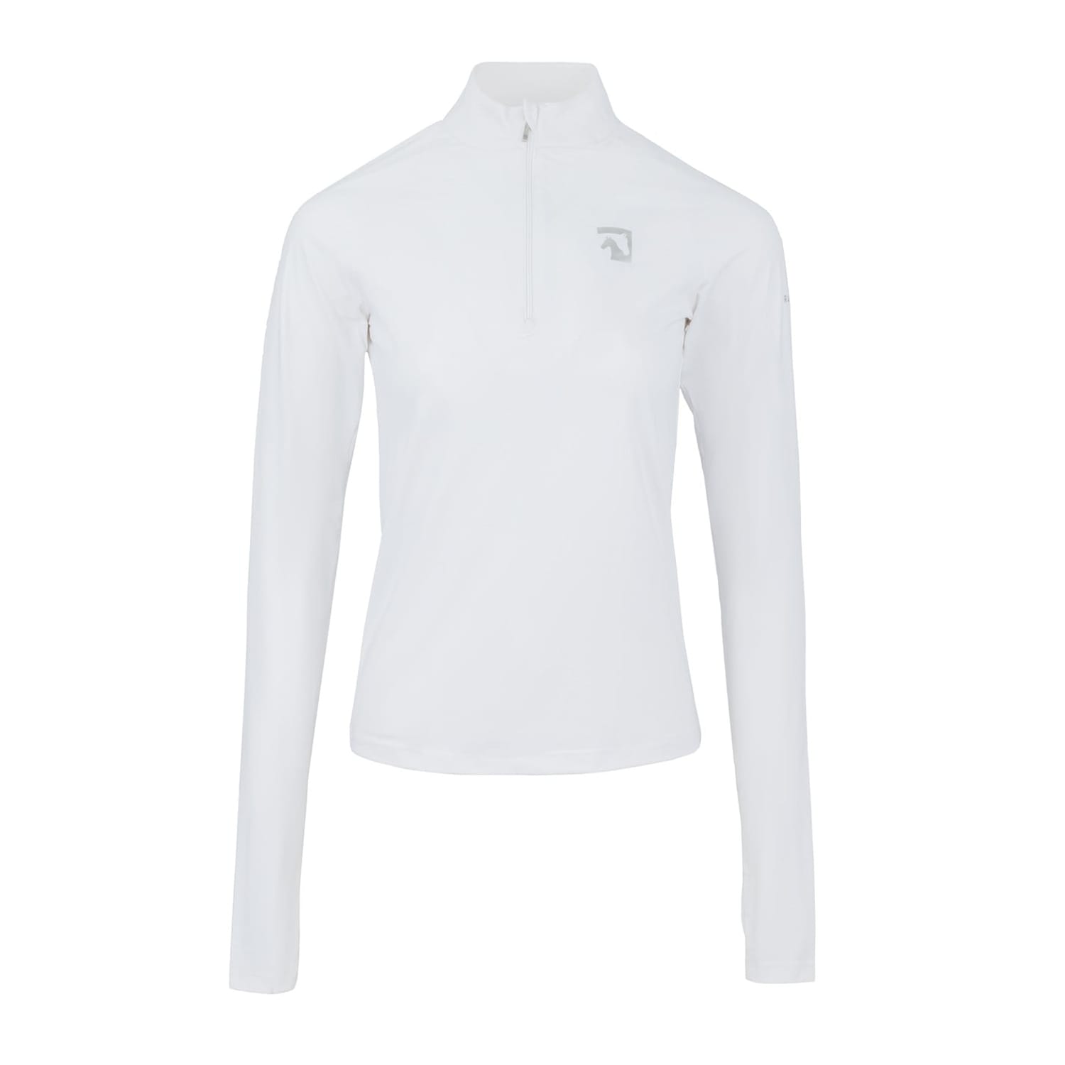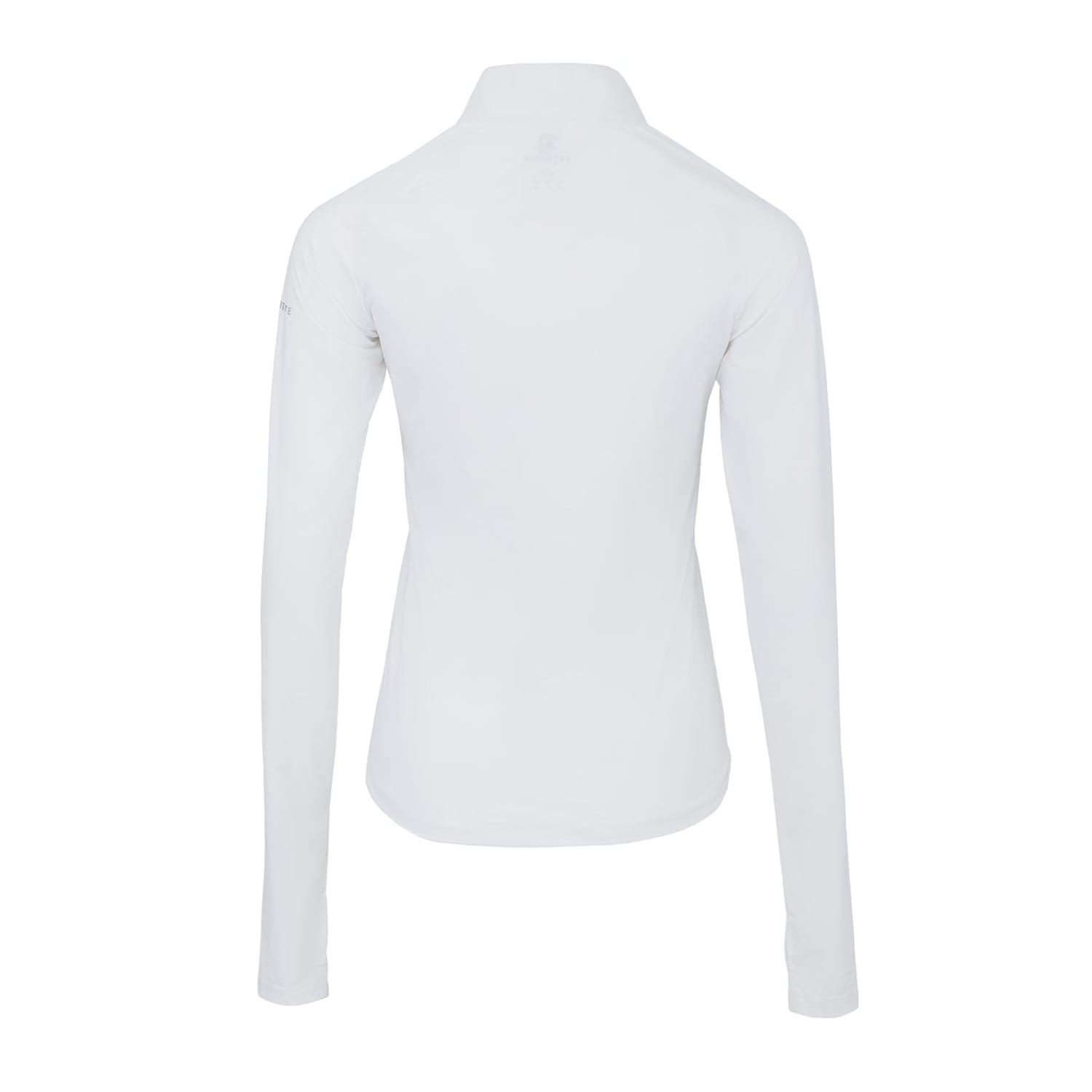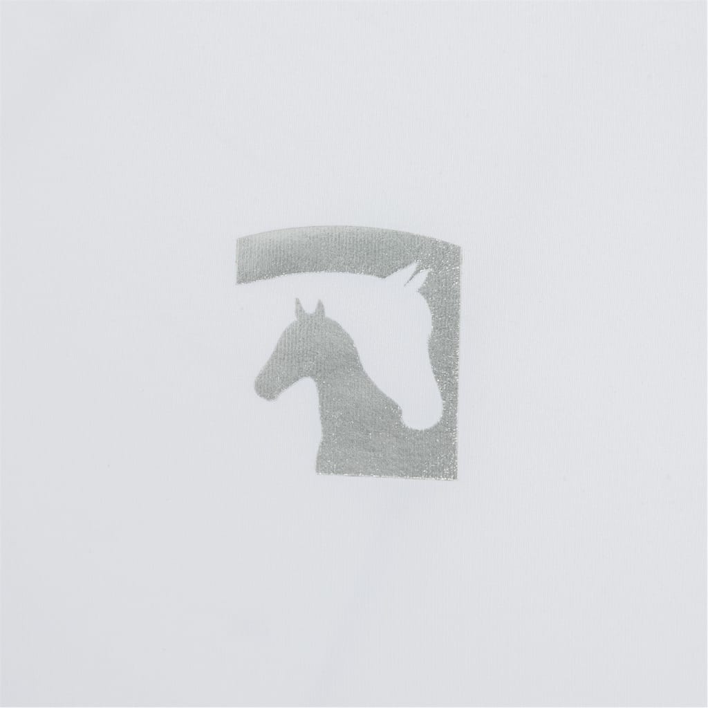 Embrace elegance and functionality with our stunning long sleeve riding base layer. Designed to elevate your wardrobe, this shirt boasts a zip-down lapel adorned with a signature logo in silver foil on the chest and sleeve, adding a touch of sophistication to your look.