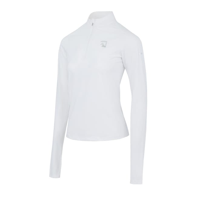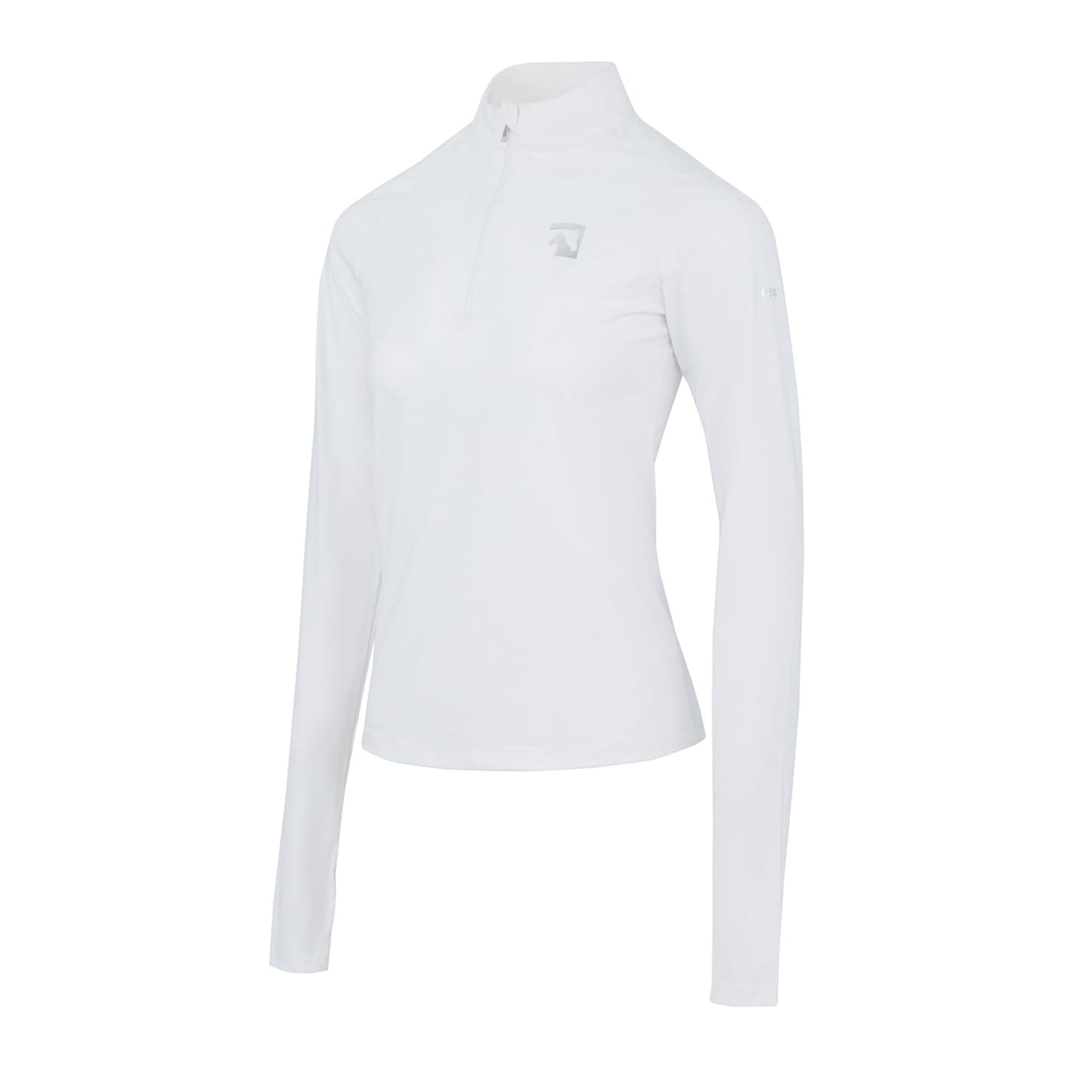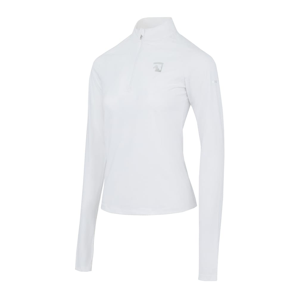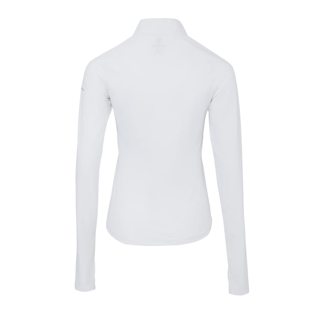 Embrace elegance and functionality with our stunning long sleeve riding base layer. Designed to elevate your wardrobe, this shirt boasts a zip-down lapel adorned with a signature logo in silver foil on the chest and sleeve, adding a touch of sophistication to your look.