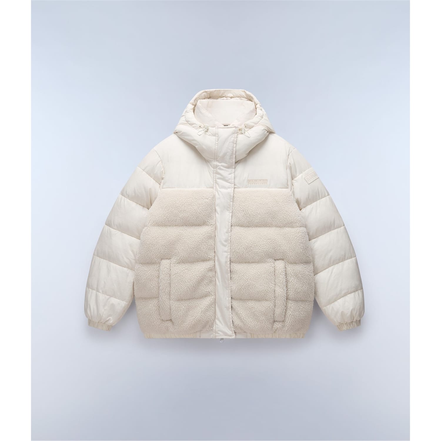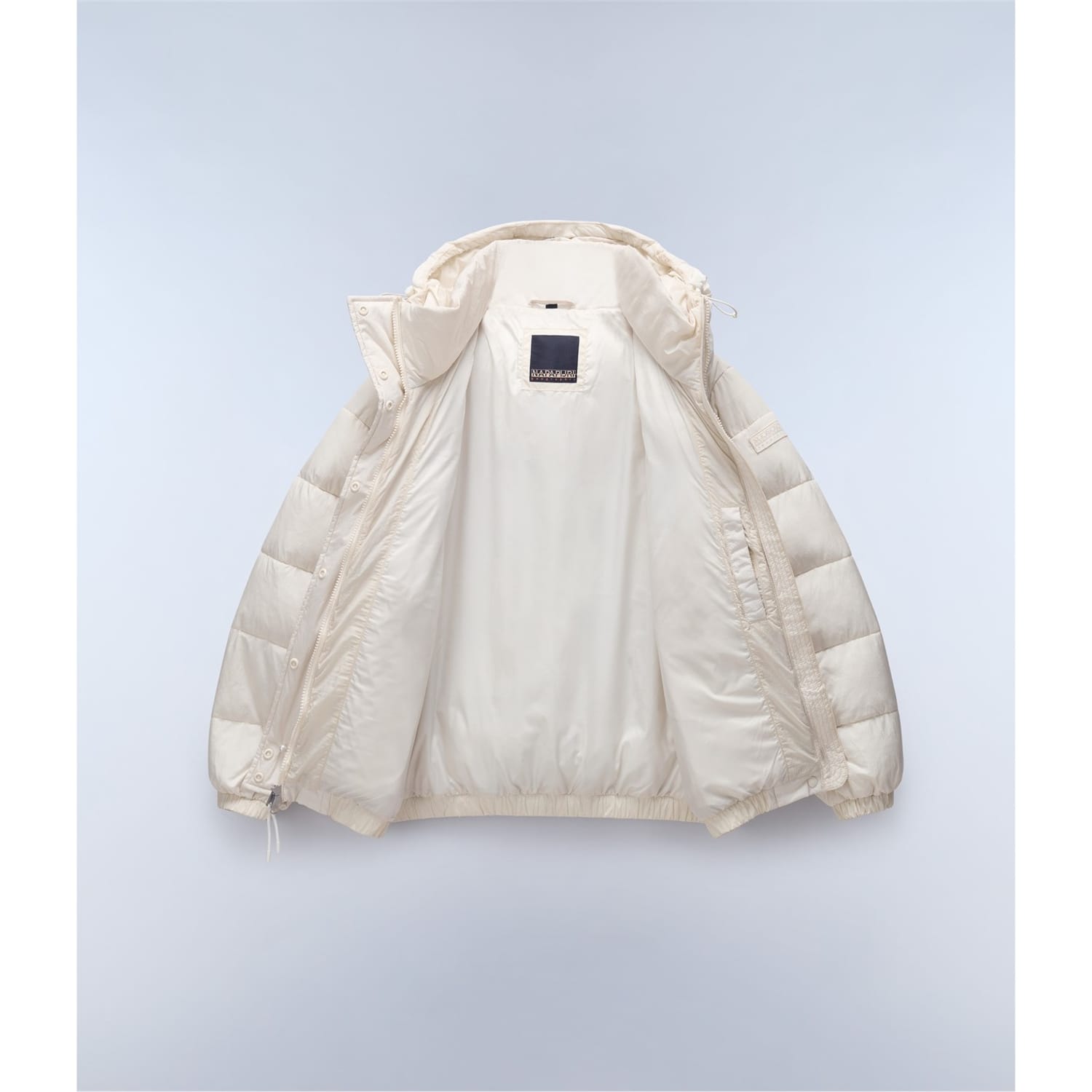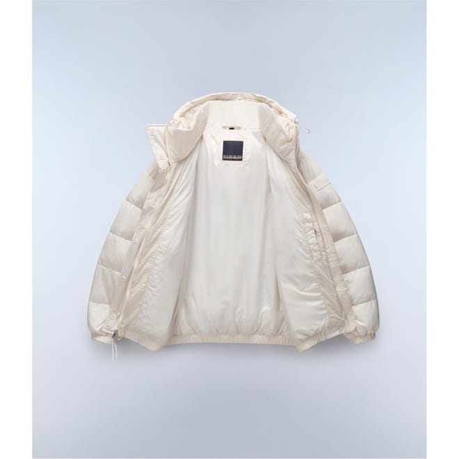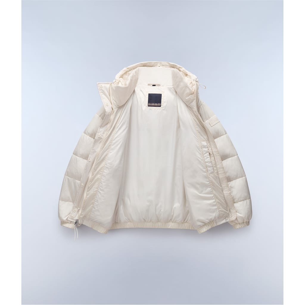 The Napapijri puffer jacket is a relaxed fit, short jacket with a solid pattern. Featuring a hooded neckline and a convenient zipper closure, it combines functionality and style. The jacket is designed with elasticated cuffs and includes logo and pocket embellishments, making it a versatile addition to your wardrobe. -