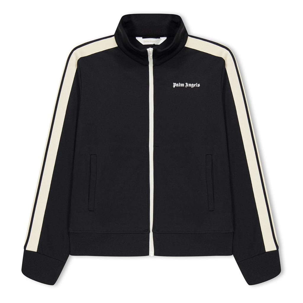 Embrace sporty style with the Palm Angels track top designed for juniors. This athletic sweatshirt features long sleeves and a high collar with a convenient zipper closure. Made for a regular fit, it includes ribbed cuffs for added comfort. The mock neck adds a modern touch, making it a versatile addition to any wardrobe. -