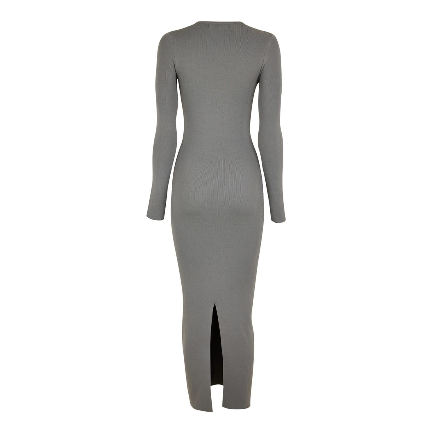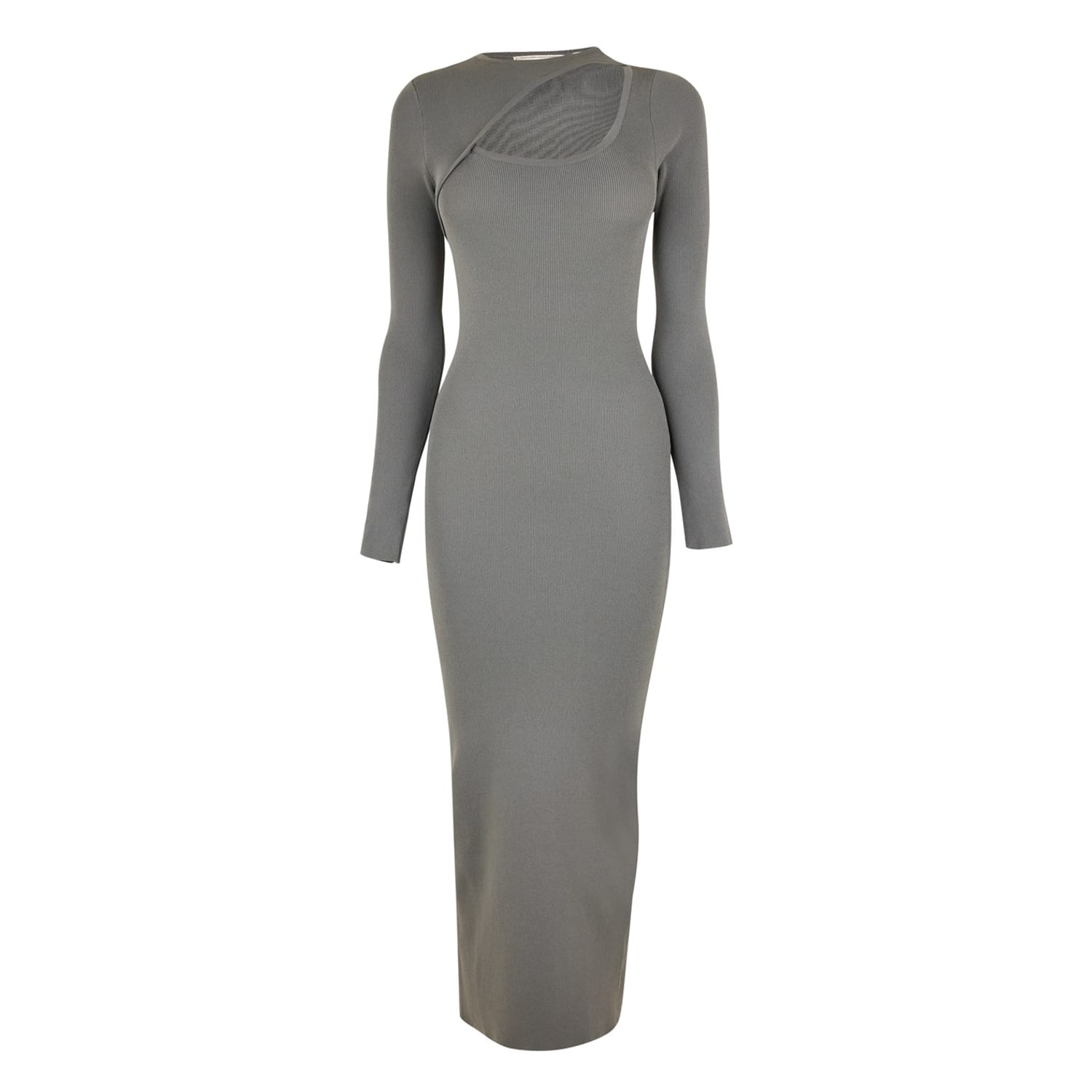 This Jack Wills midi dress is a perfect blend of style and comfort. Crafted from knit material, it features a crew neck and long sleeves, offering a sleek bodycon silhouette. The solid pattern and straight hem add to its elegant appeal, while the cut-out embellishments provide a modern touch. Ideal for those seeking a slim fit with a contemporary edge. -