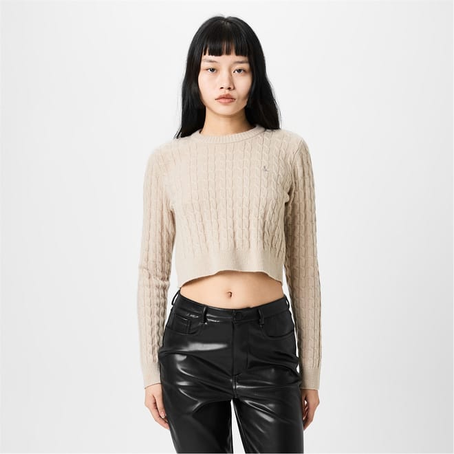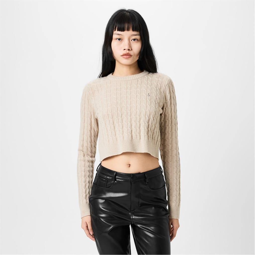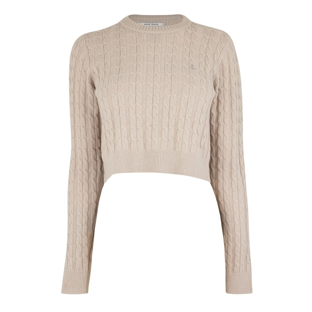 Discover the Jack Wills cropped cable knit sweater, a stylish addition to any collection. This long sleeve cardigan features a crew neck and regular fit, offering both comfort and elegance. The ribbed collar and cuffs enhance its classic appeal. Perfect for a chic and cosy look. -