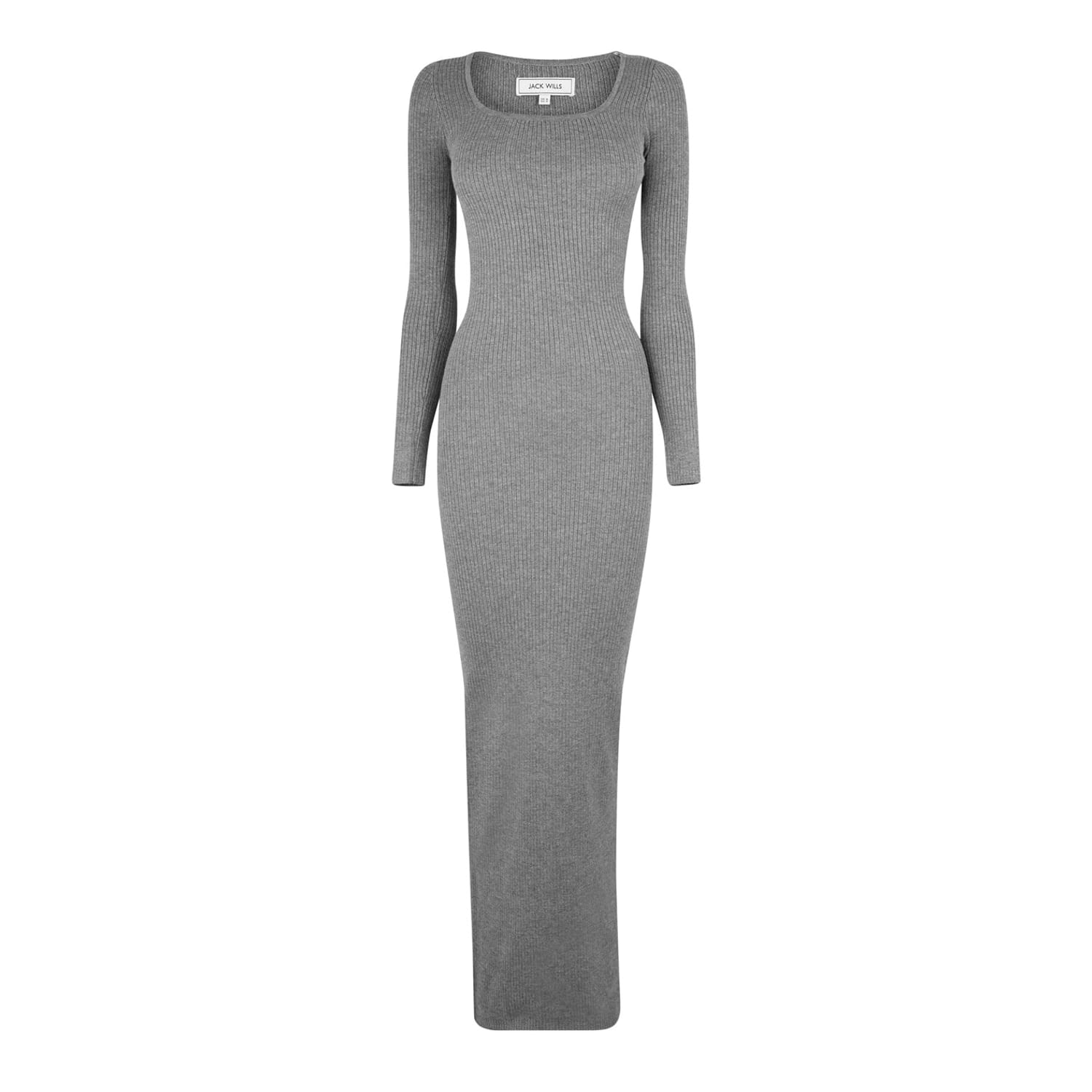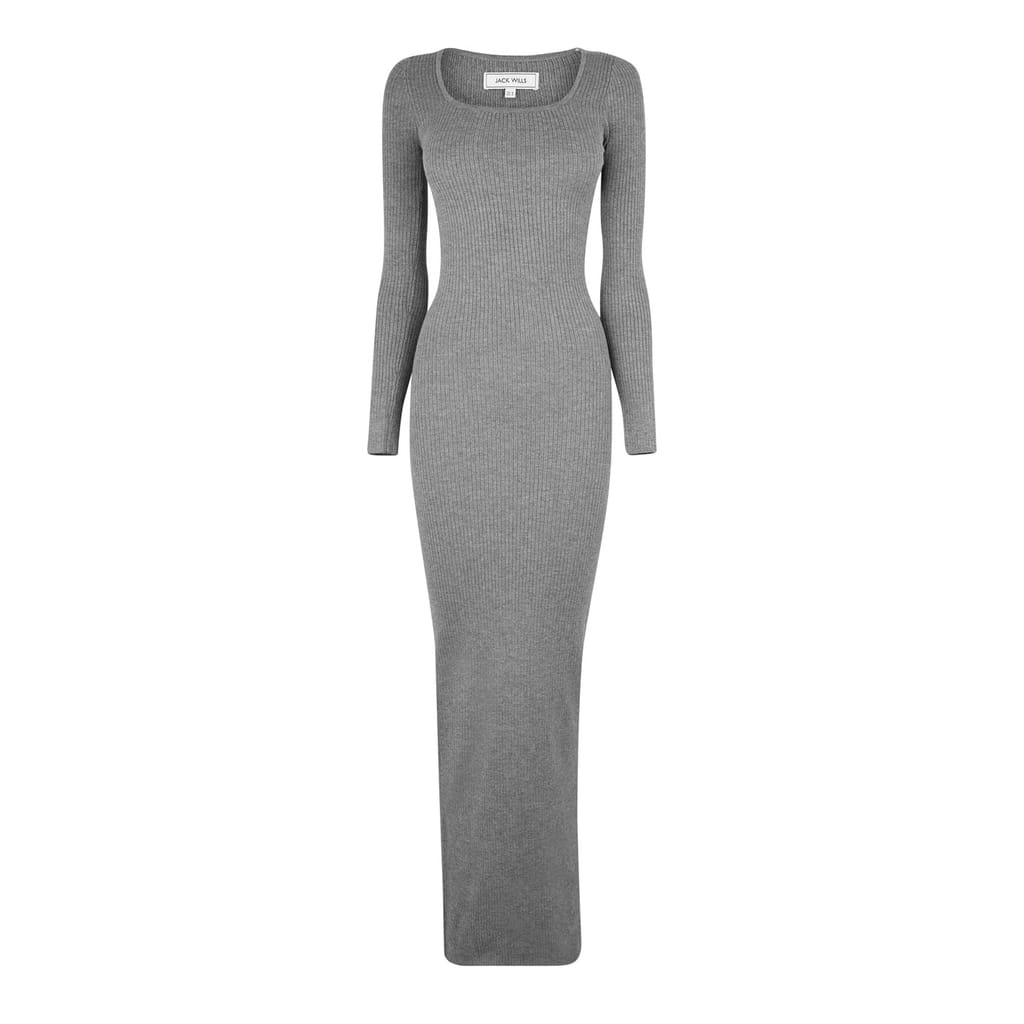 This Jack Wills bodycon maxi dress features a square neck and a slim fit, crafted from a knit material. The ribbed pattern and ribbed detail add texture to the design, while the straight hem provides a clean finish. Ideal for those seeking a stylish and contemporary look. -