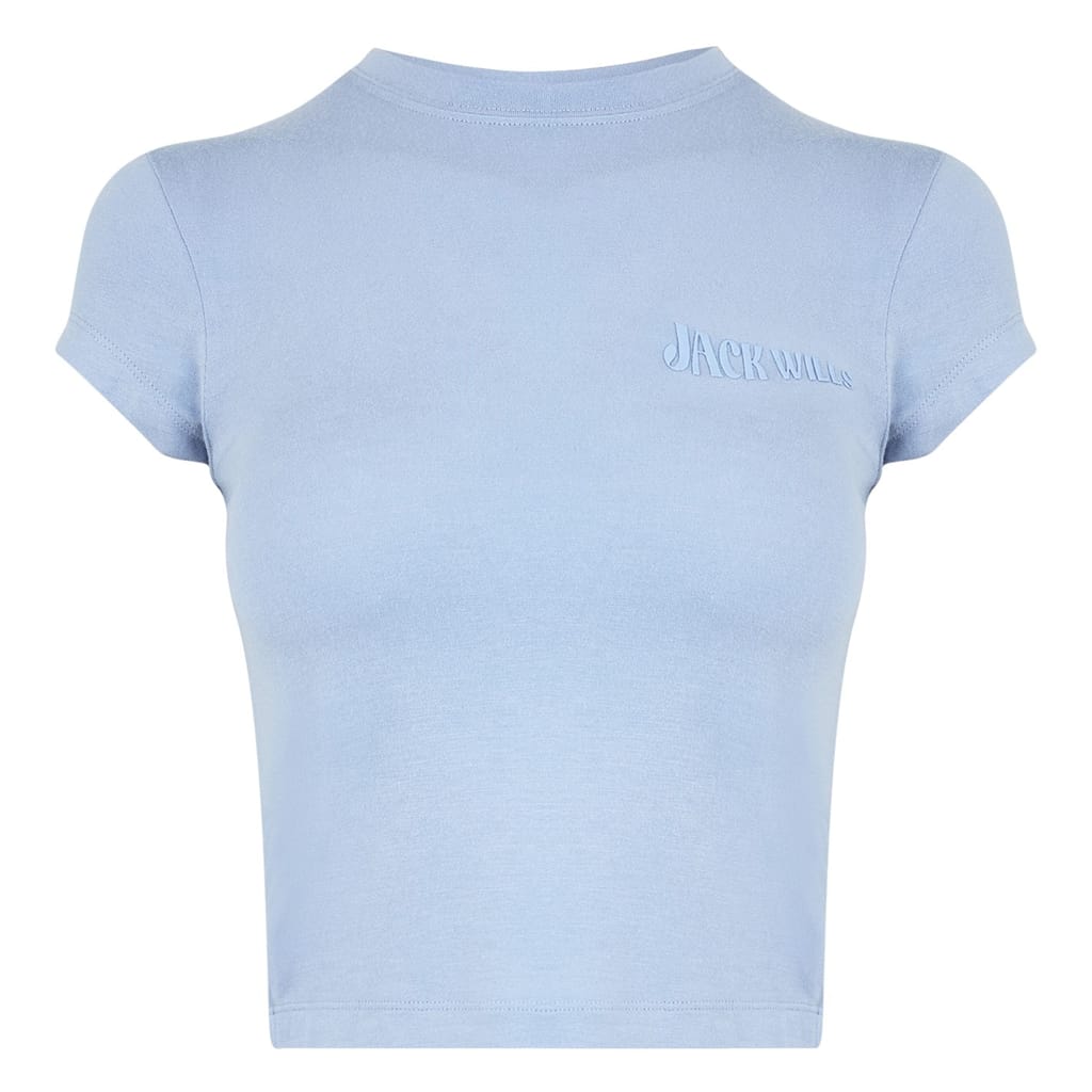 Discover the Jack Wills cropped top, a perfect addition to your casual collection. This slim fit piece features a crew neck and a solid pattern, offering a sleek and modern look. The top is embellished with the iconic logo, adding a touch of brand identity to your wardrobe. -