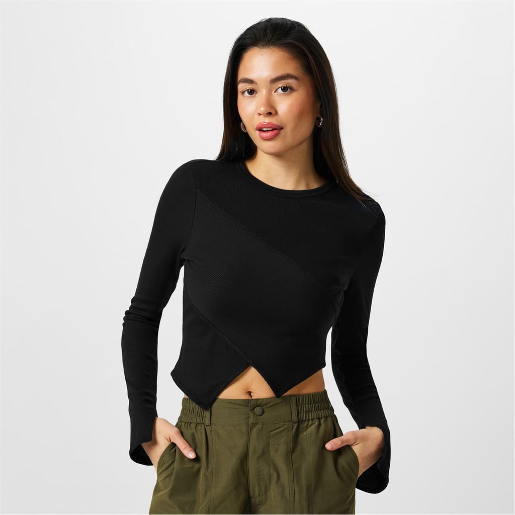 Discover the Jack Wills ribbed t-shirt, featuring a crew neck and long sleeves. This slim fit top is designed in a cropped length, offering a modern silhouette. Perfect for those who appreciate a stylish, form-fitting look. -