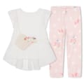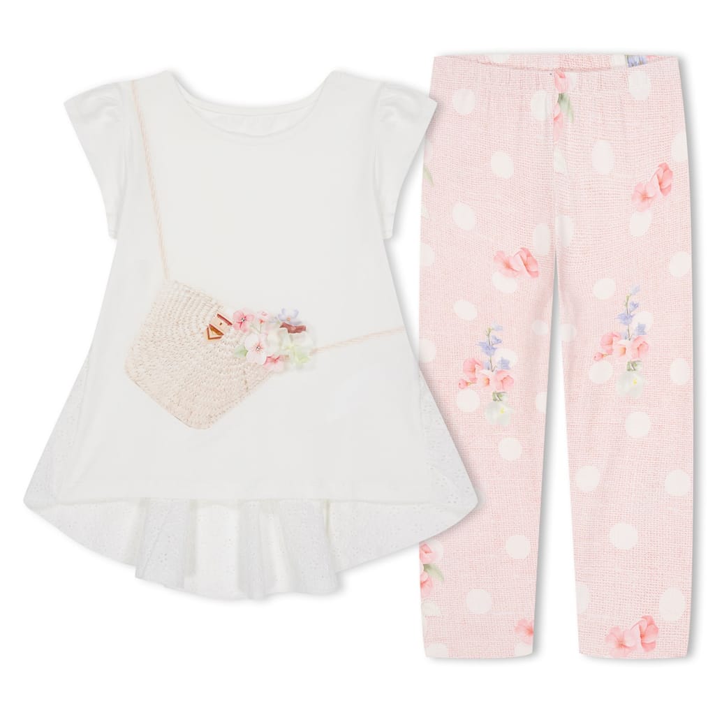 Discover the Lapin House polka dot top and pant set, featuring a charming crew neck t-shirt with cap sleeves and short sleeves. The casual trousers complete the look, offering both comfort and style for any occasion. Perfect for adding a playful touch to your wardrobe. -