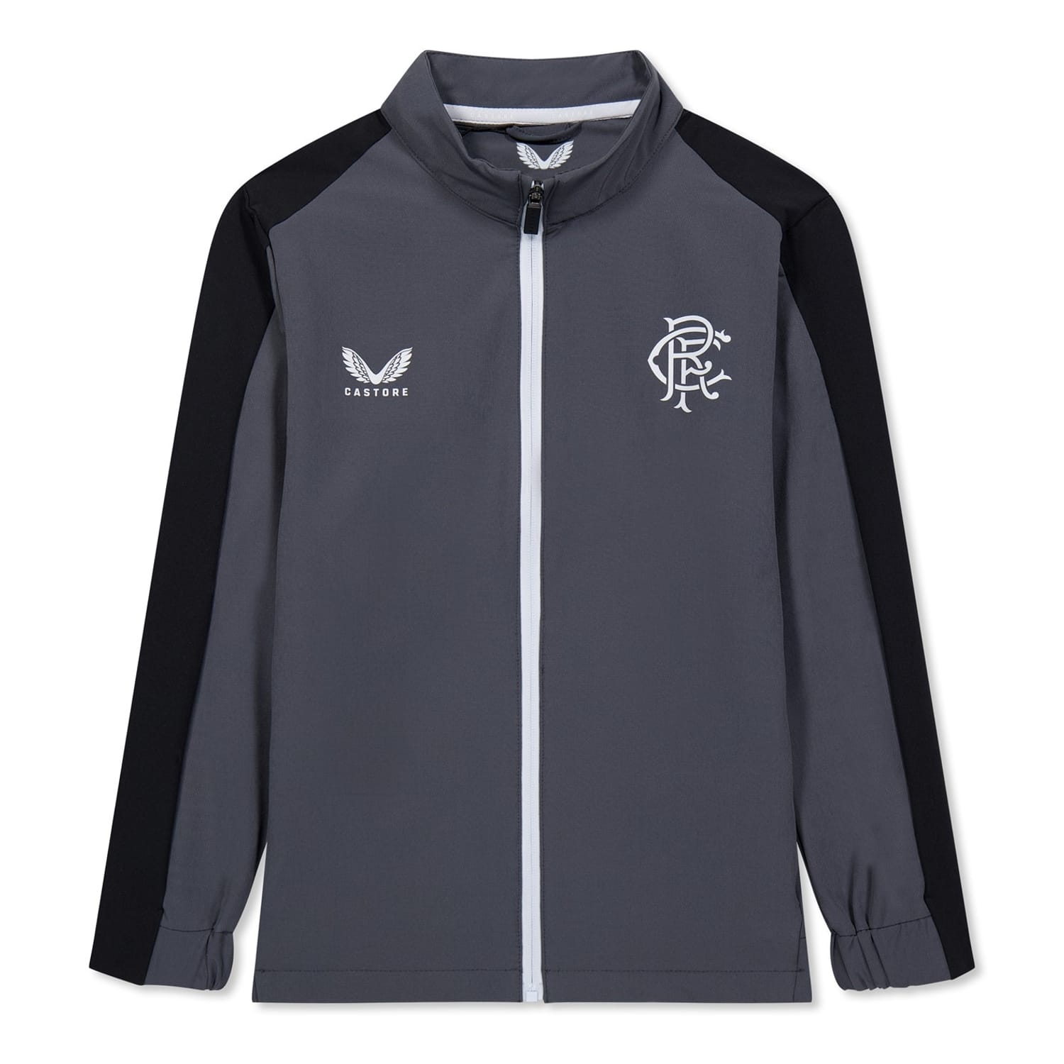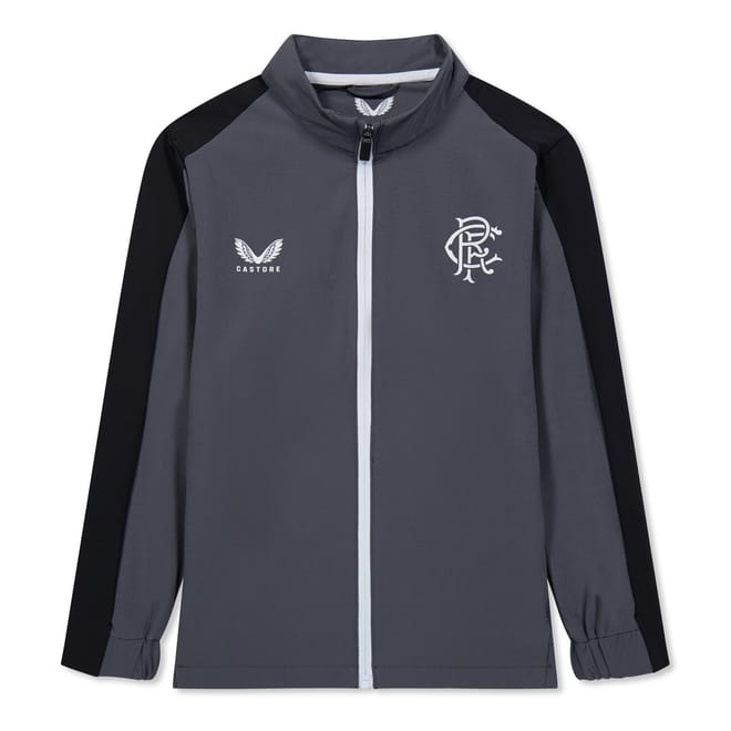 This Castore track jacket features a mock neck and a relaxed fit for ultimate comfort. The color block pattern and raglan sleeves add a stylish touch. It includes a practical zipper closure and front zipper pockets. The jacket is embellished with a logo, making it a perfect blend of functionality and style. -