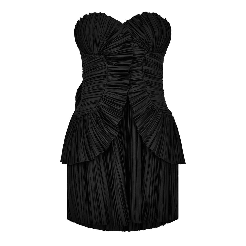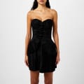 Discover the Cult Gaia mini dress, a stunning bodycon piece with a sweetheart neckline. This slim fit dress features elegant ruffle embellishments, adding a touch of sophistication to its solid pattern. Perfect for those seeking a chic and modern look. -