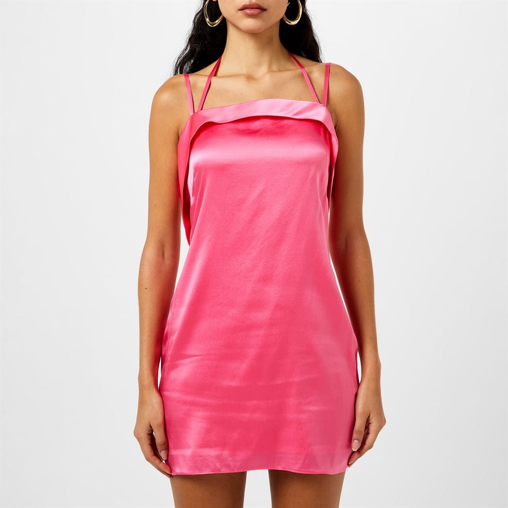 This Cult Gaia mini dress is a stylish slip design featuring a square neck and spaghetti straps. The solid pattern and slim fit create a sleek silhouette, while the straight hem adds a touch of elegance. Ruffle embellishments enhance the overall look, making it a chic choice for any occasion. -